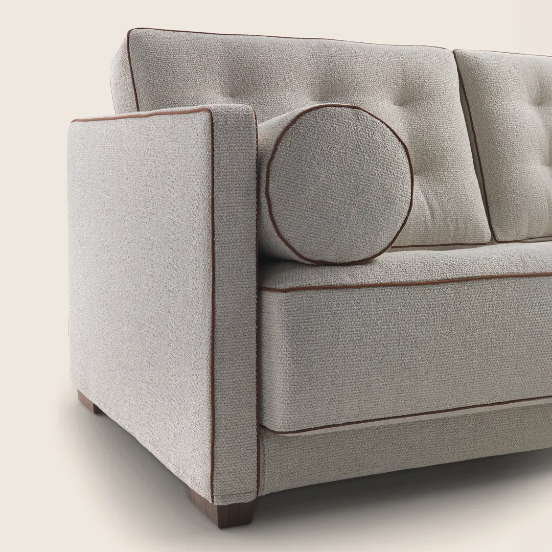 Le Canapé is a very linear sofa whose style is perfectly poised between classic and contemporary; it is available in three sizes. Modern in style but traditional in workmanship, this sofa uses springs in the seat cushions; the poplar structure is padded with a layer of polyurethane foam and then covered with a protective laminated fabric.  All these Designs are Fully Bespoke . Our Expert Team can create any Design as per your specifications and requirements. For More information please contact our expert.