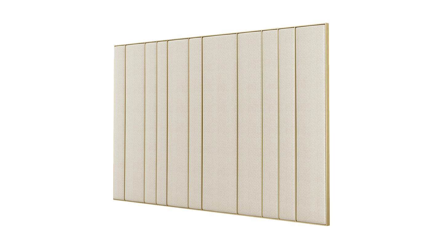 An easy way to update the look and feel of a bed frame, the LONG ISLAND II Headboard features a frame of brushed brass inlaid with fabric-covered panels. Together, these create an irregular pattern that gives the design a sense of rhythm.