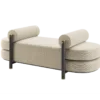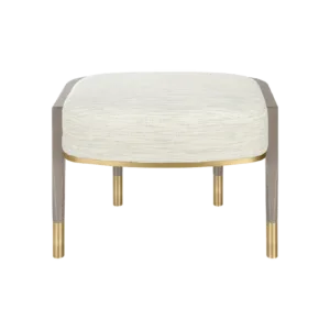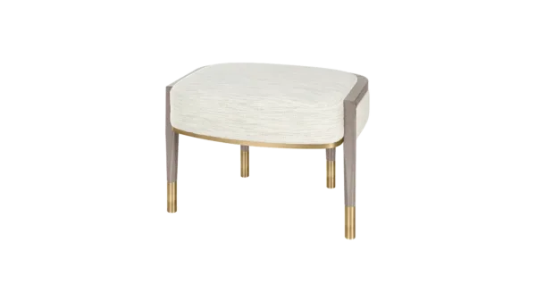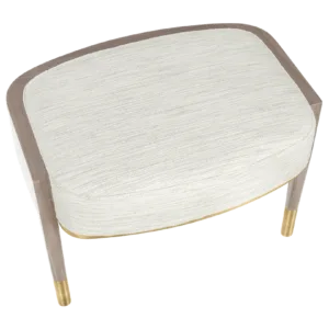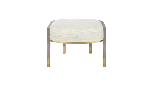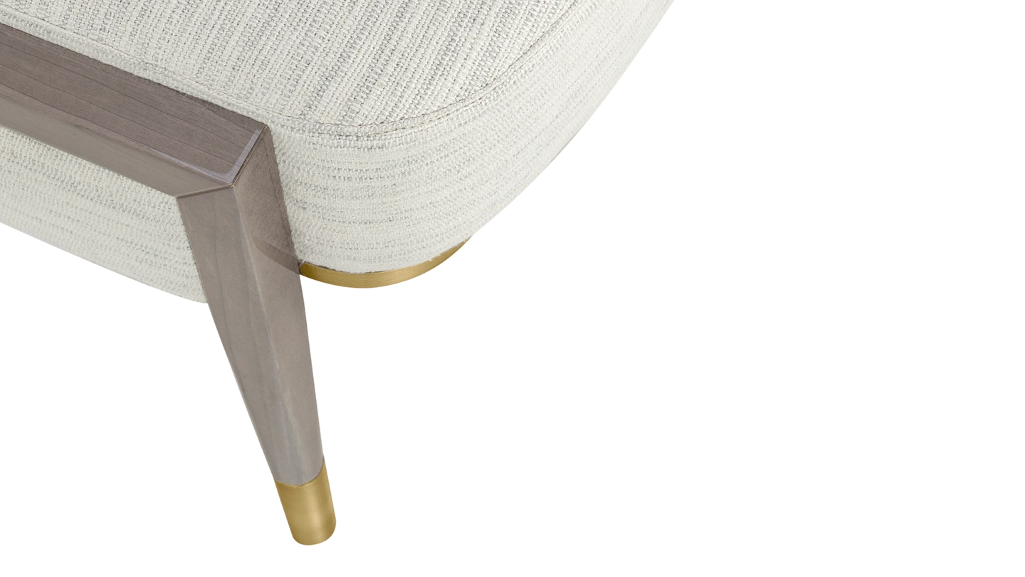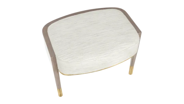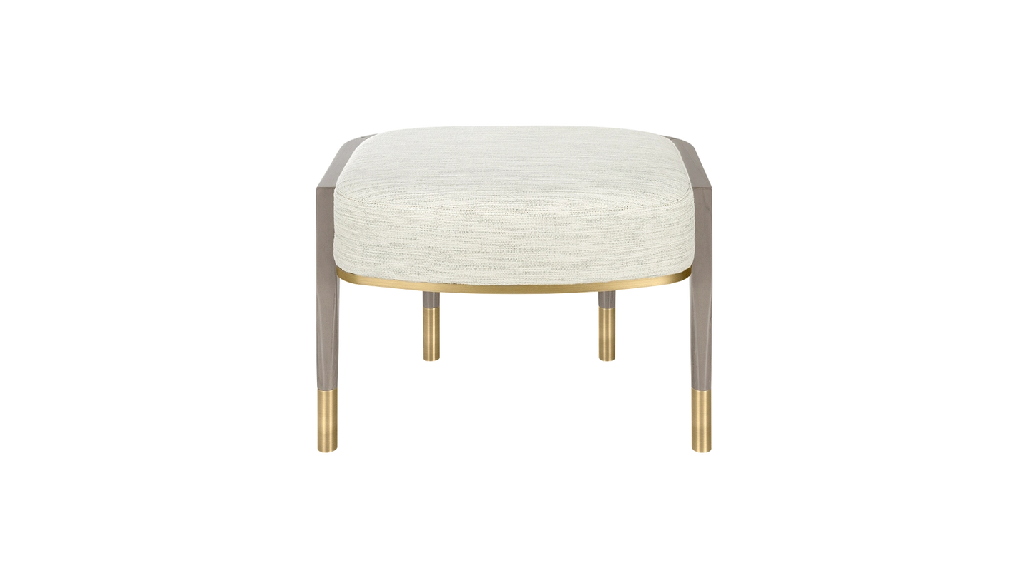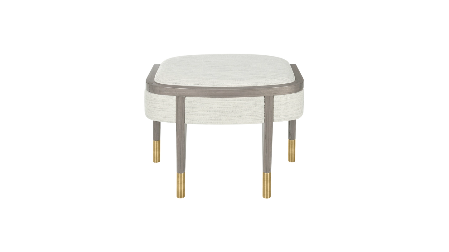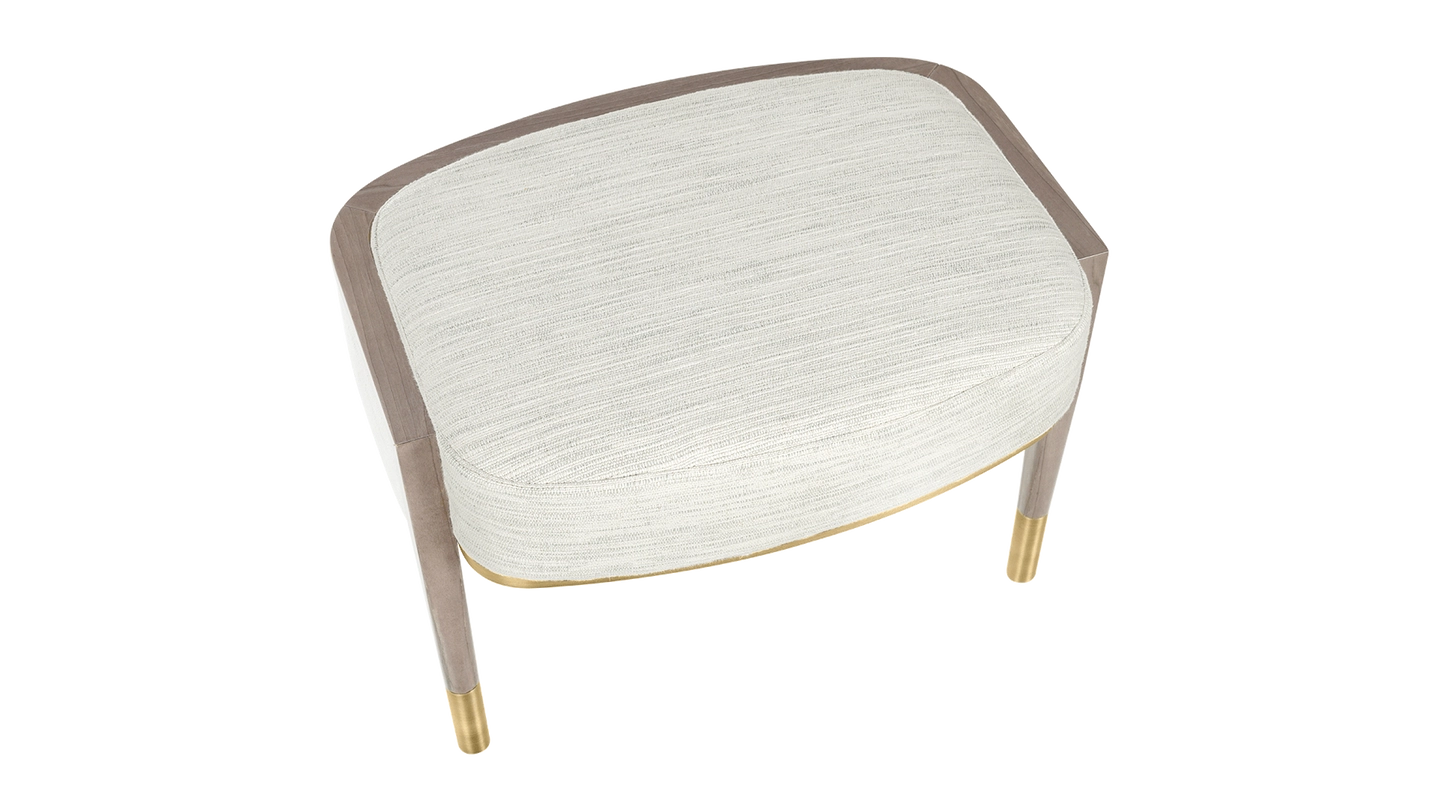 Occupying the middle ground between a bench and a stool, the elegant LORIENT encloses a cushioned upholstered seat in solid, glossy wood and brass. We imagine it perched alongside a chic dressing table.