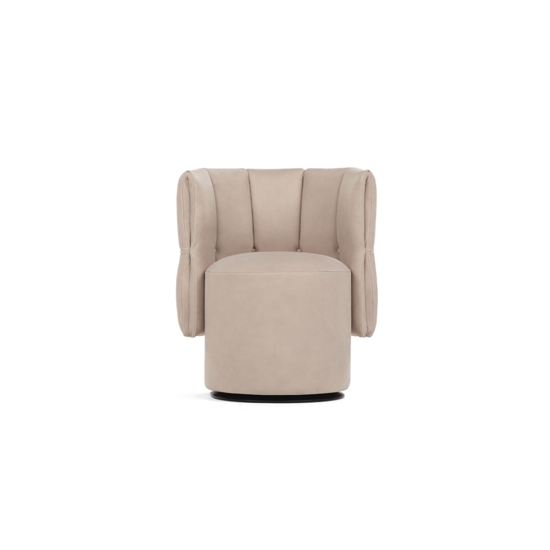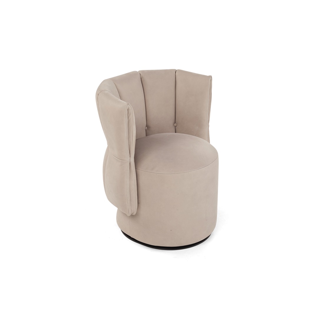 Madame G is the first European version of the ‘Italian Lady’, who wears a new outfit and becomes even more international. The new French version, also available in swivel and storage versions, will become an expression of ‘Made in Italy’ in the world and will mark the beginning of a collection that will give life to a ‘Madame’ for each country. The seat remains unchanged with its characteristic tail base reminiscent of the train of an evening dress. However the back of the Madame G, which in the Giuggiola is woven and inspired by the particular hair bun traditionally worn by the women of our territory, is transformed into a sumptuous tulip, whose corolla is held together by elegant buttons inspired by capitonné workmanship