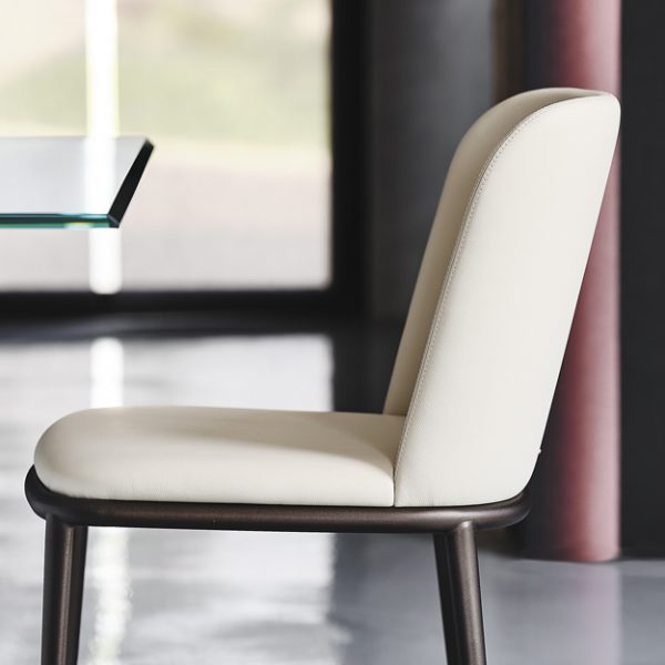 The Magda is a contemporary chair featuring tapered legs paired with a cushioned seat and subtle curved backrest. The legs are available in a choice of finishes, while the chair can be upholstered in a selection of real or synthetic leathers from the Cattelan Italia collection.