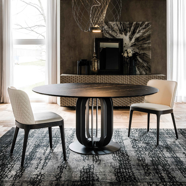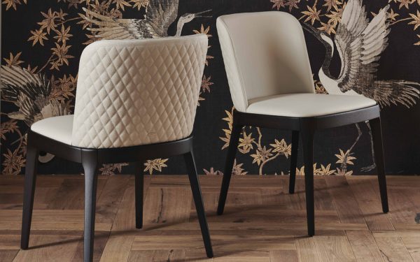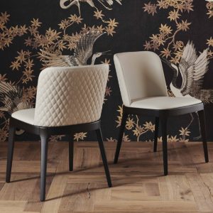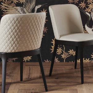 The Cattelan Italia Magda Couture Chair features a quilted padded diamond pattern on the rear of the backrest and a cushioned seat. The distinctive curved wood frame is available in a range of colourways, while the chair can be upholstered in a choice of synthetic leather or soft leathers.