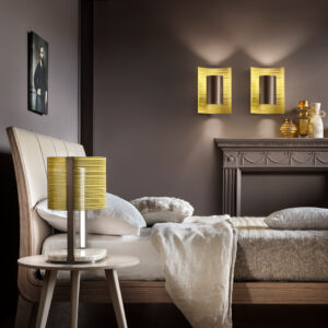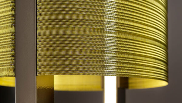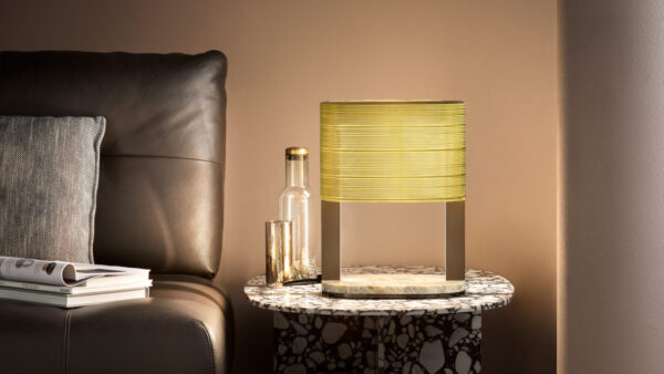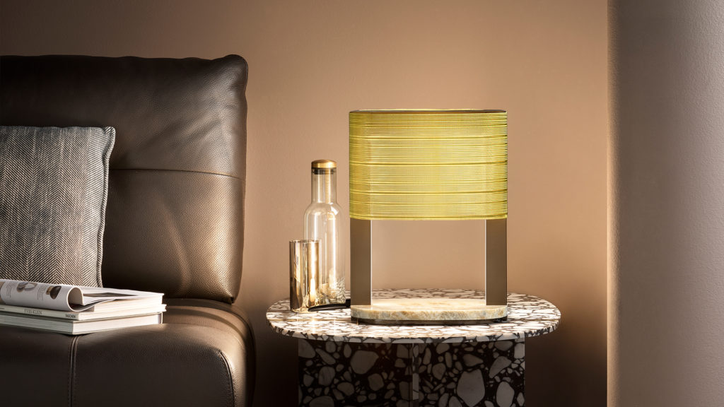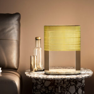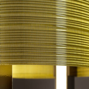 Ebe is inspired by the mythological elegance of Canova’s statues. Metal, marble and a brass wire mesh are intertwined to create luminous geometries of timeless, austere beauty.