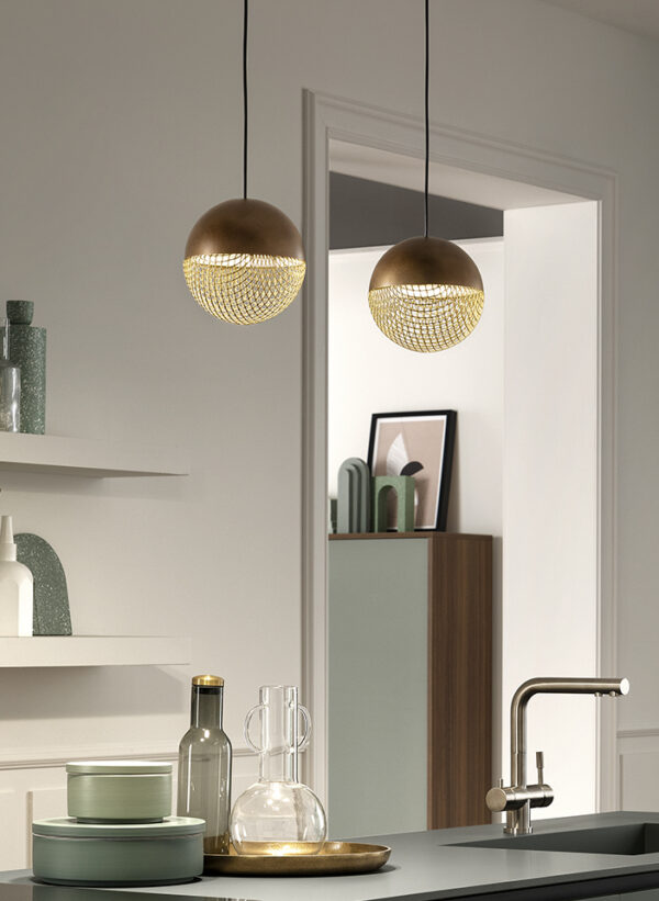 Iglù is an intuition born from observing the perfection of the sphere, transformed into a perfect, and unique shape by mesh that, rather than obstruct the light, instead creates a pattern of light and shadow.