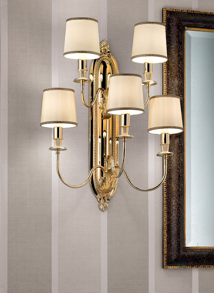 Gold cast brass frame Shantung lampshades