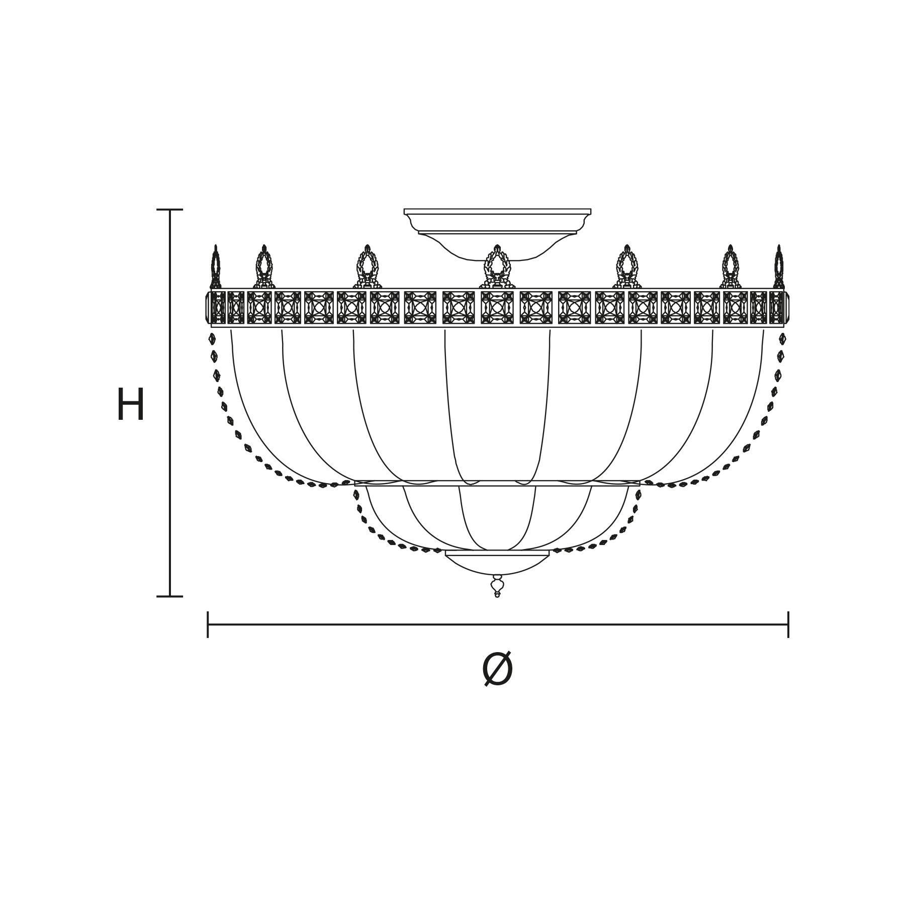 Metal frame. Crystal or glass pendants