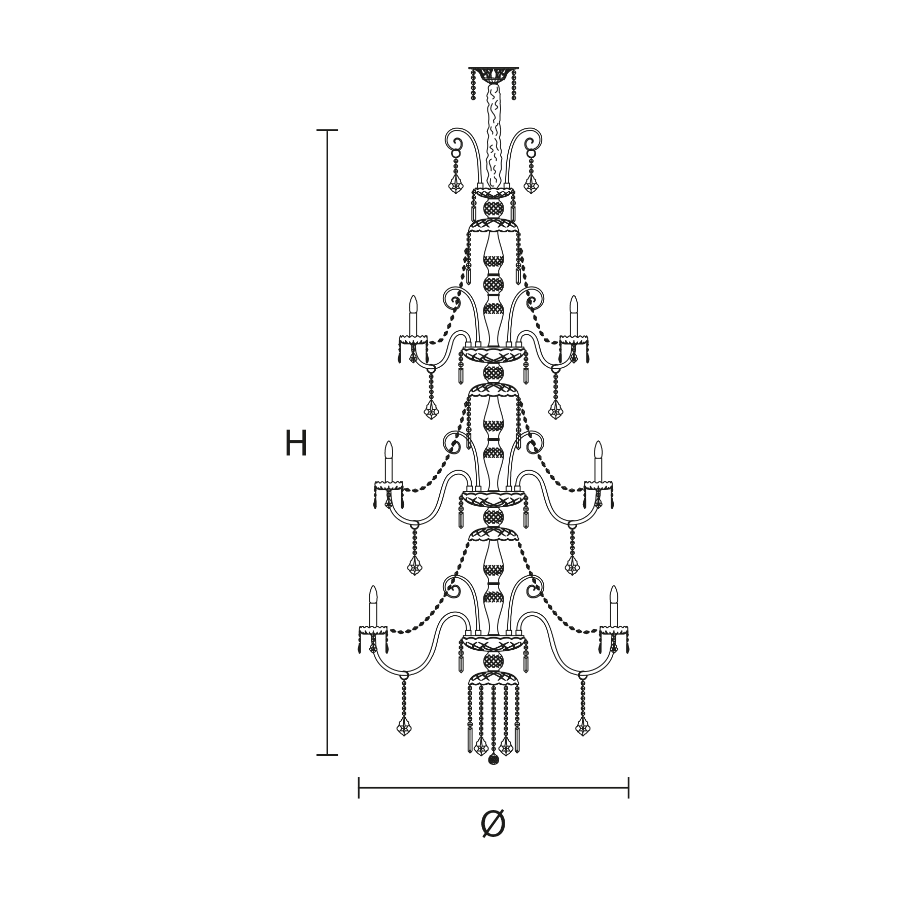 Blown glass arm frame, crystal pendants