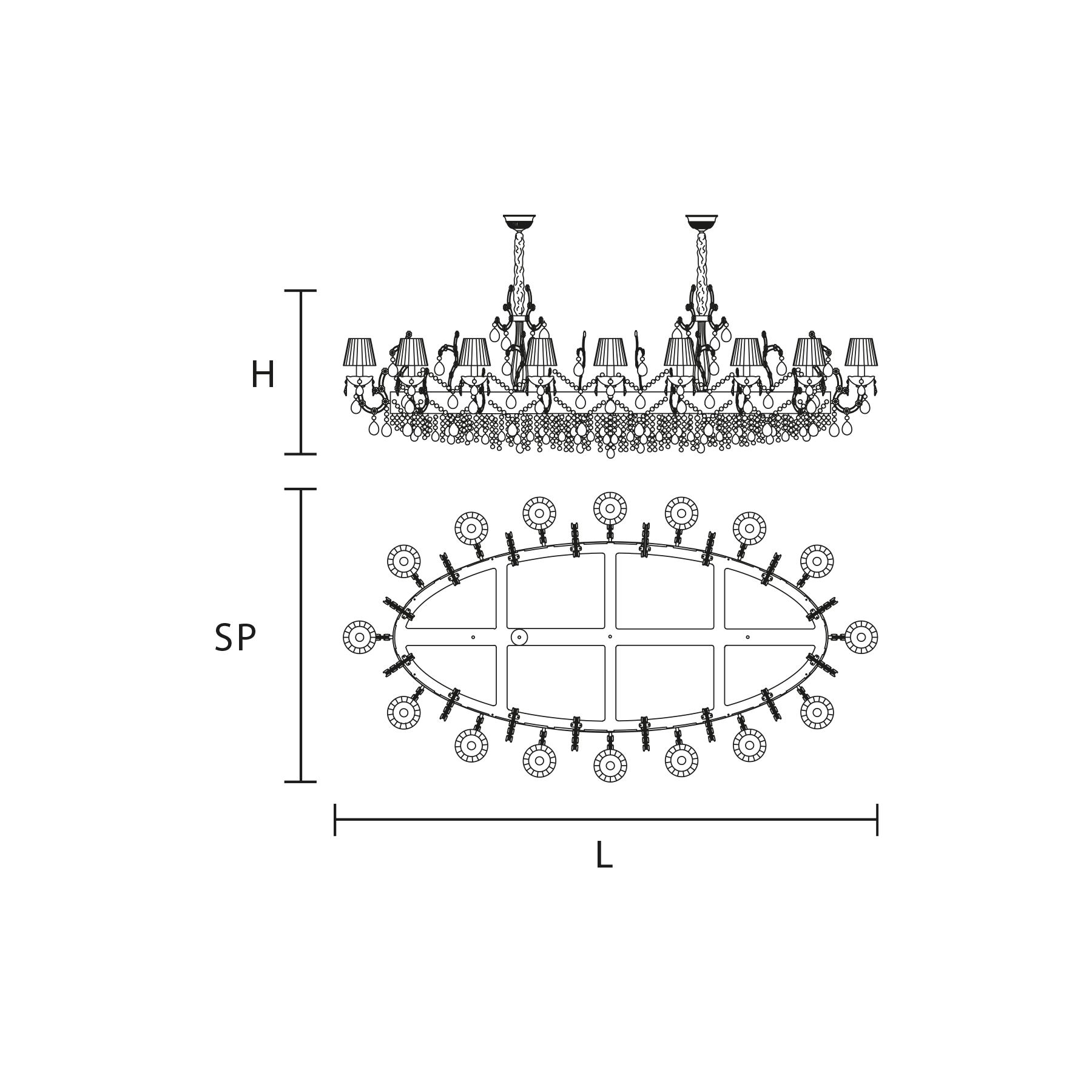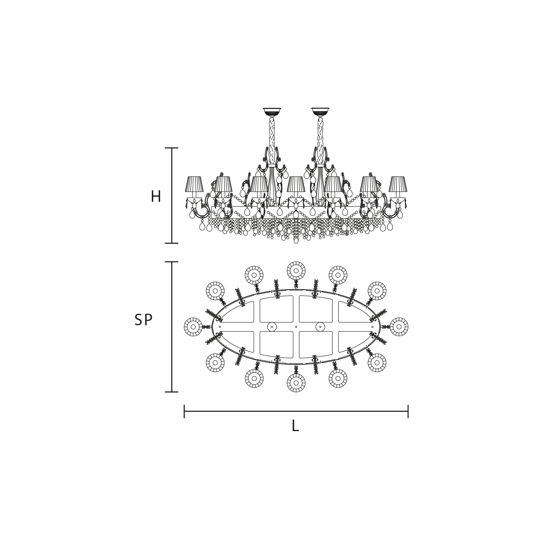 Version MT / CG: 12XE14X10 W max -12xE27x20W max(not included) Triac Dimmable