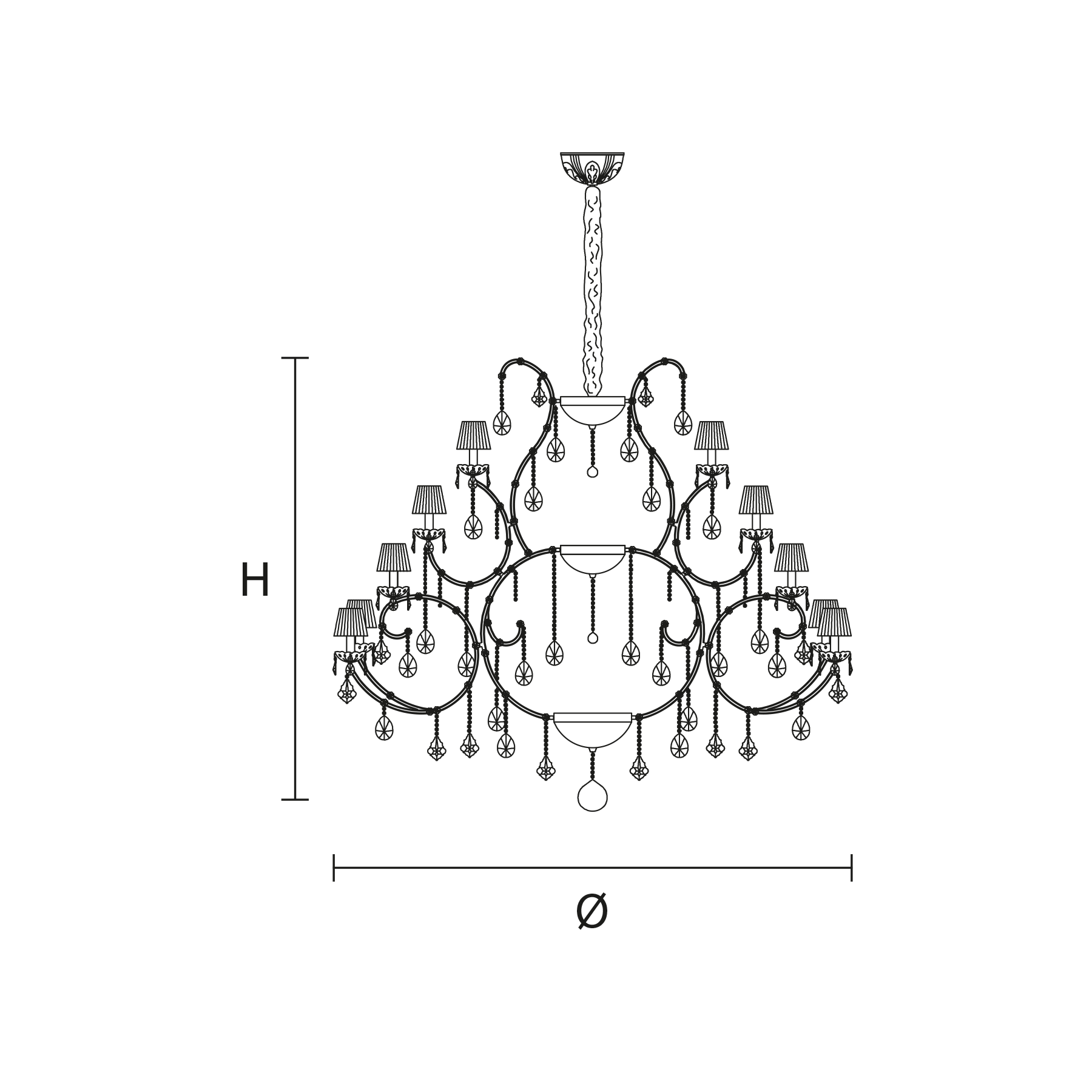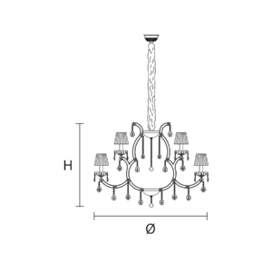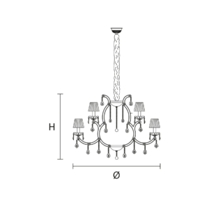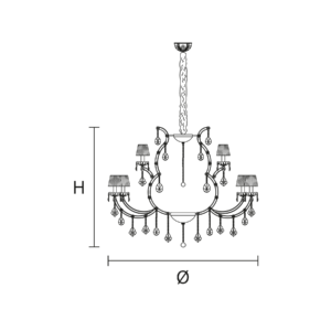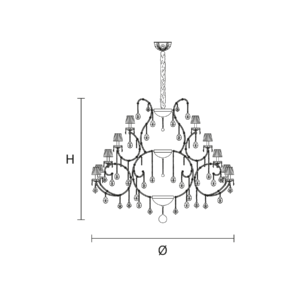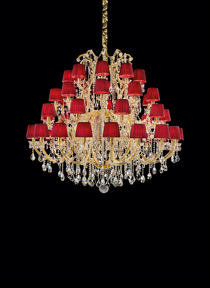 Maria Teresa is a collection of iconic Venetian chandeliers, with glass-covered arms, volutes and hanging arrays of pendants.