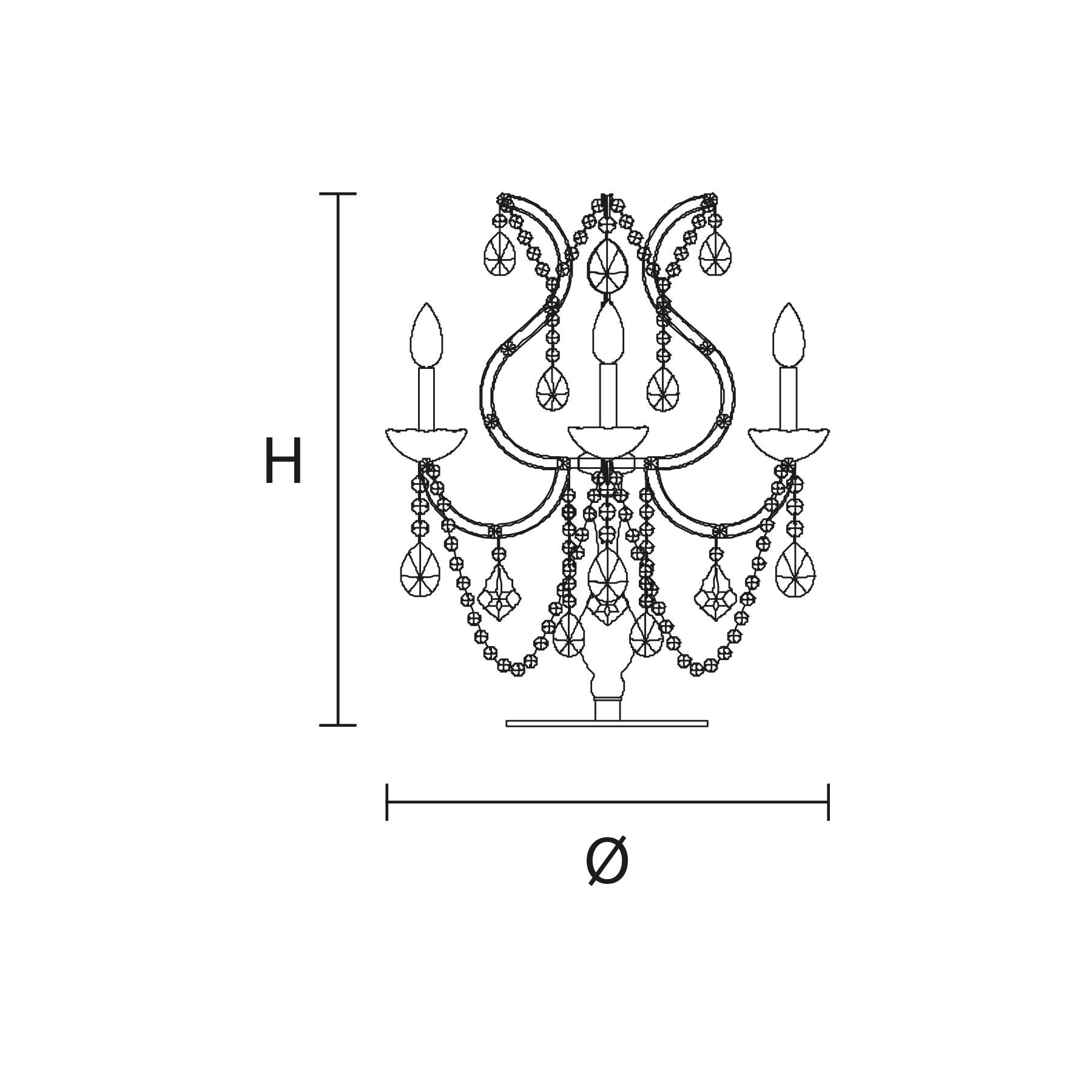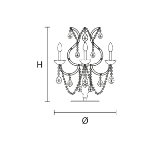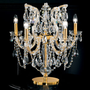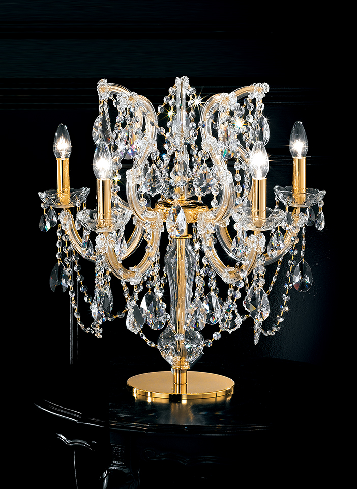 Maria Teresa is a collection of iconic Venetian chandeliers, with glass-covered arms, volutes and hanging arrays of pendants.