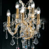 Maria Teresa is a collection of iconic Venetian chandeliers, with glass-covered arms, volutes and hanging arrays of pendants.