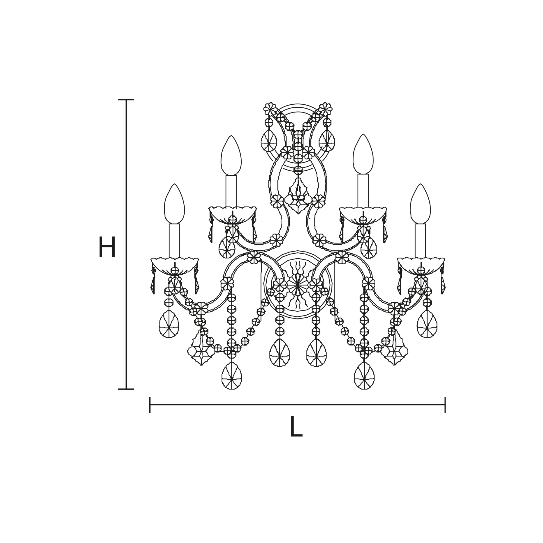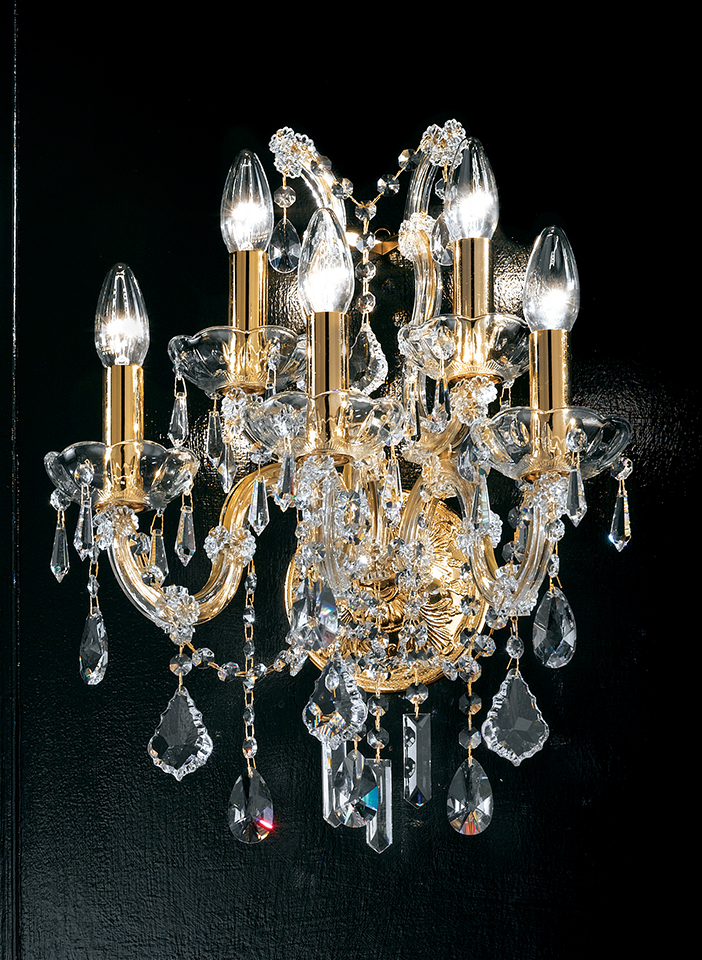 Maria Teresa is a collection of iconic Venetian chandeliers, with glass-covered arms, volutes and hanging arrays of pendants.