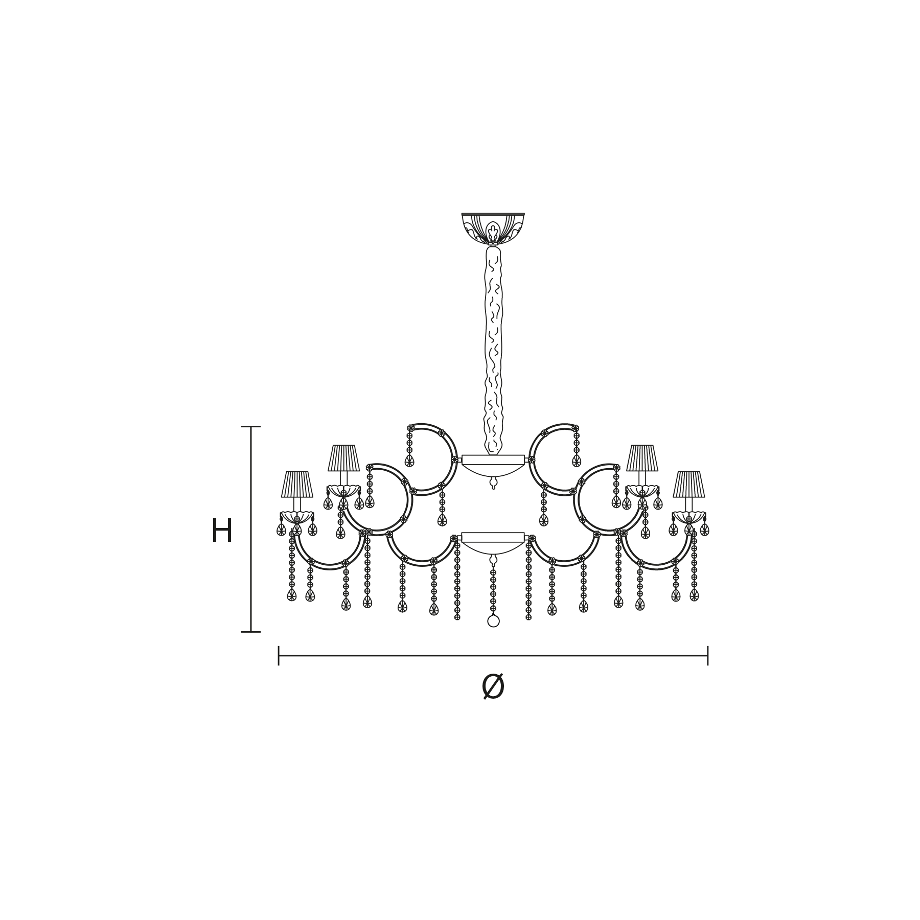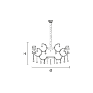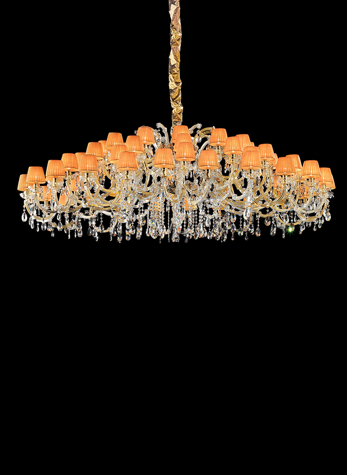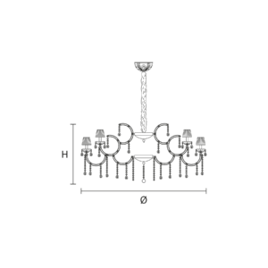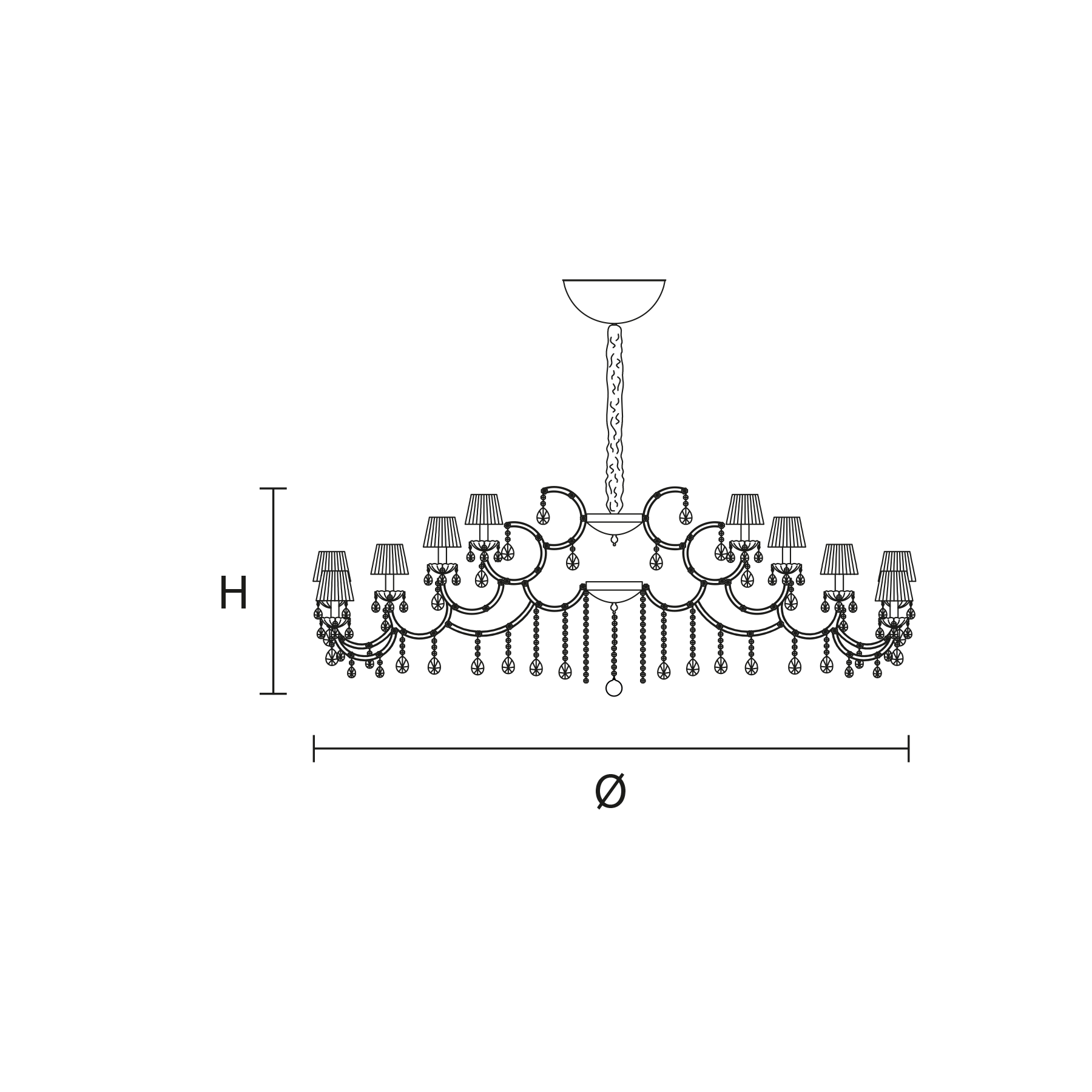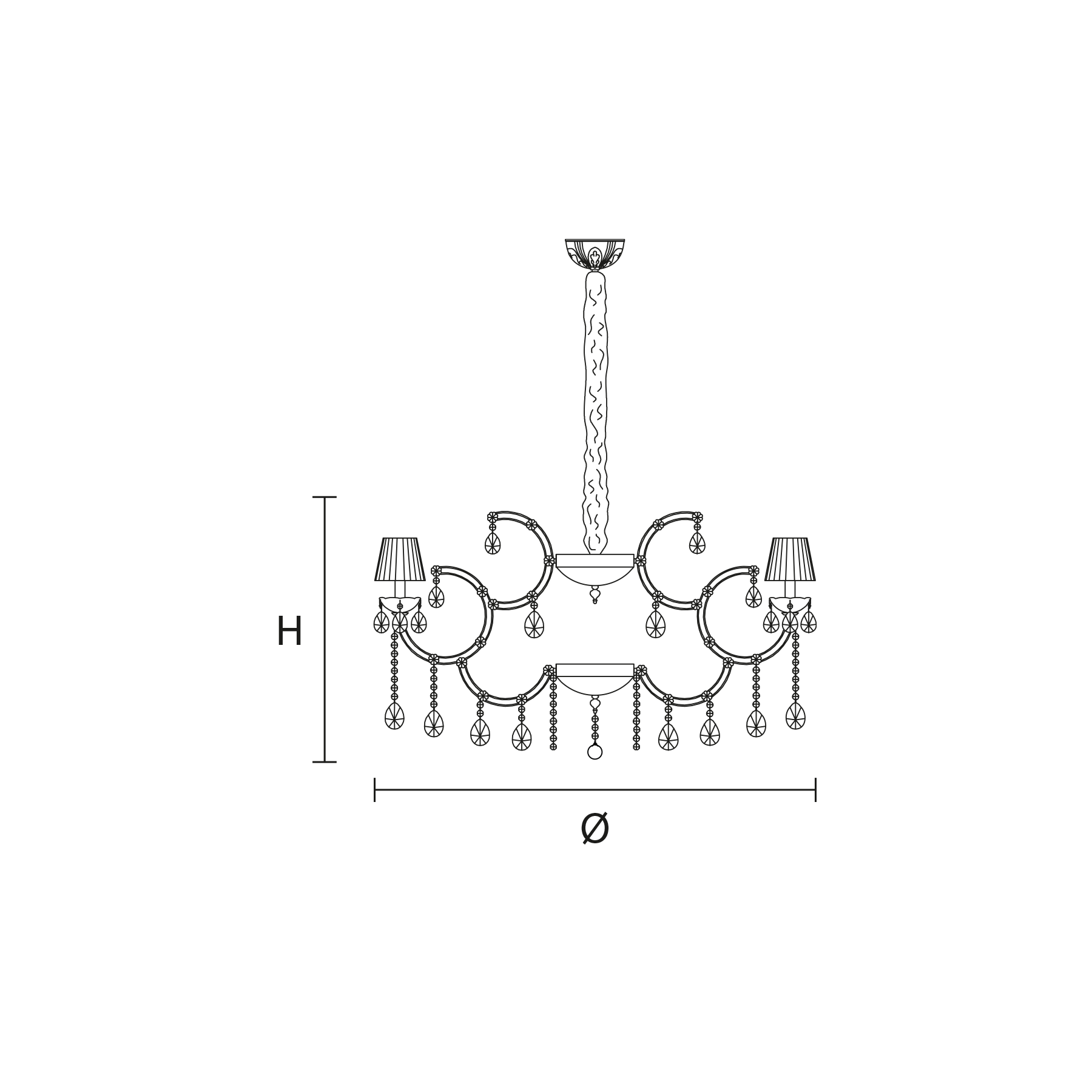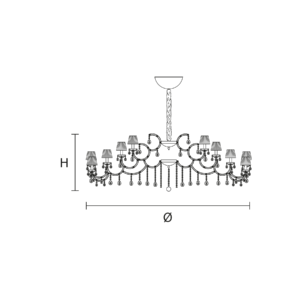 Maria Teresa is a collection of iconic Venetian chandeliers, with glass-covered arms, volutes and hanging arrays of pendants.
