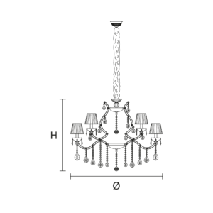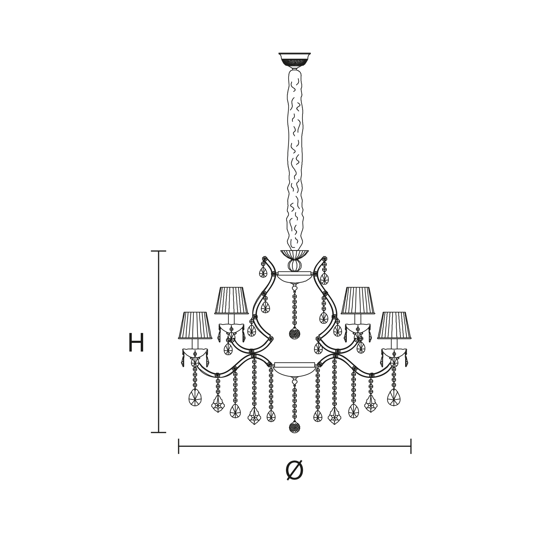 Maria Teresa is a collection of iconic Venetian chandeliers, with glass-covered arms, volutes and hanging arrays of pendants.
