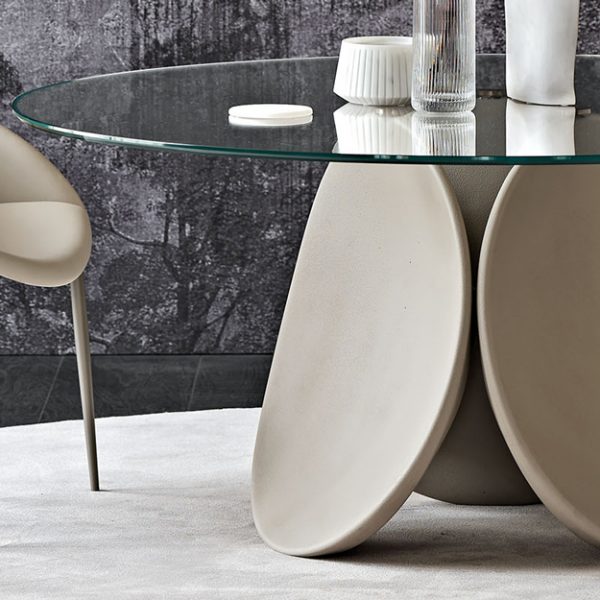 The Maxim Table by Cattelan Italia is a compact design with a sculptural look. The Maxim is characterised by its central base featuring three petal-shaped clay-coated cement sections, which can be selected in a choice of earthy Argile clay textured colourways. Minor imperfections can be expected as part of this innovative low-energy finish.
