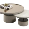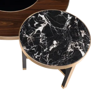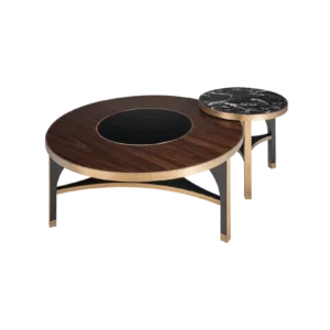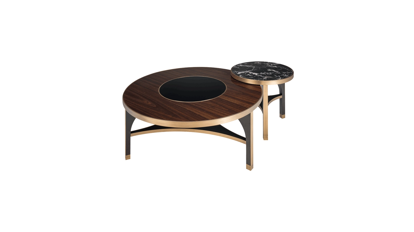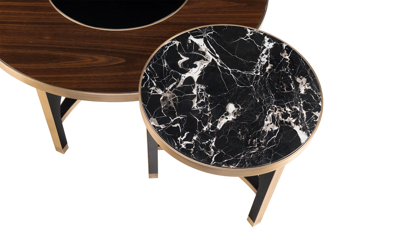 An impressive double act, the rhythmical MEMPHIS Coffee Table’s two volumes can be positioned together or apart when extra surface space is required. A different interpretation of the same silhouette, both incorporate a circular top and tripod base that features a signature triangular brace.