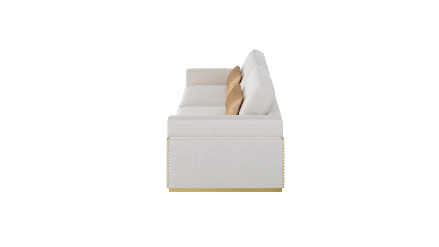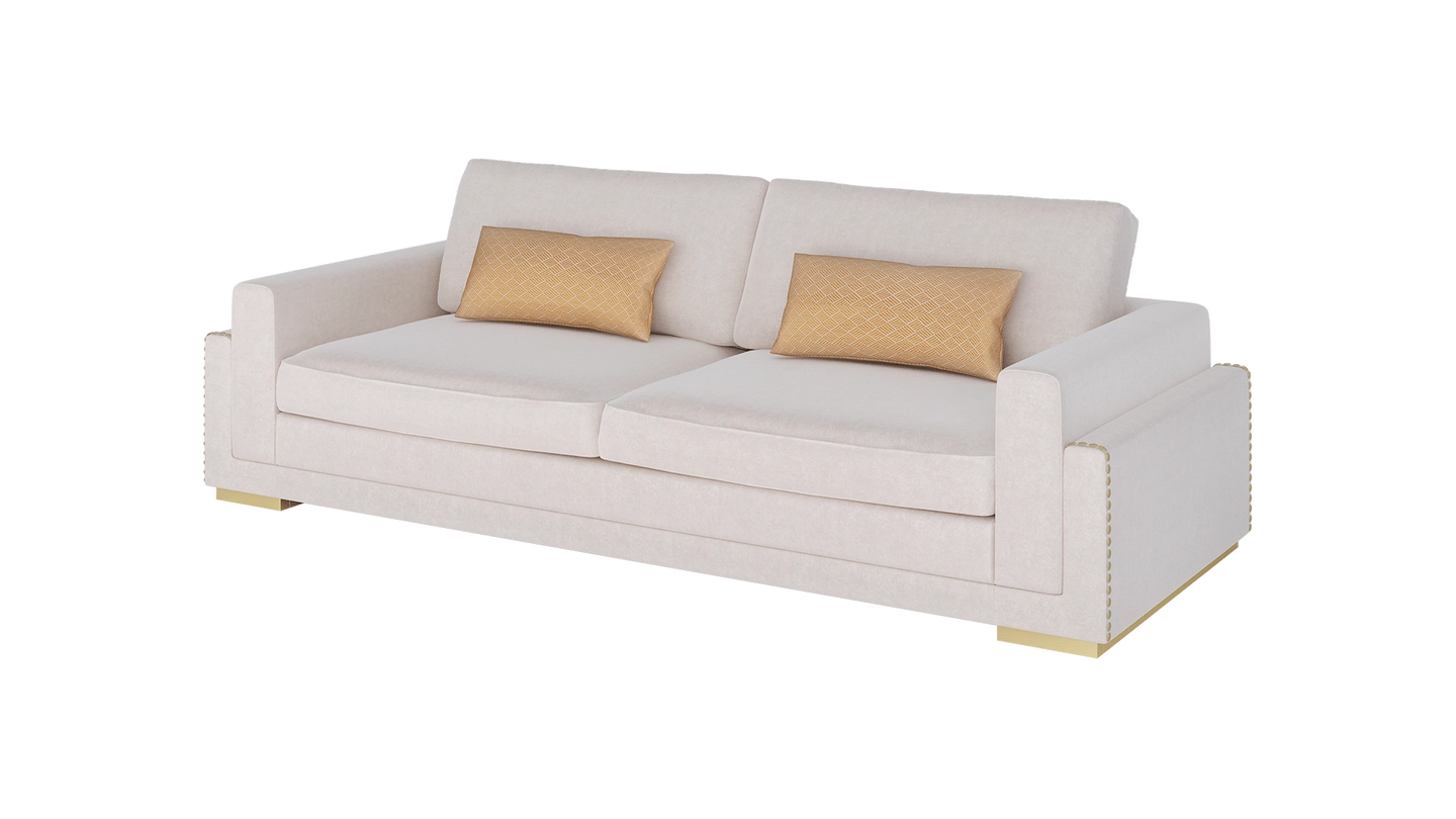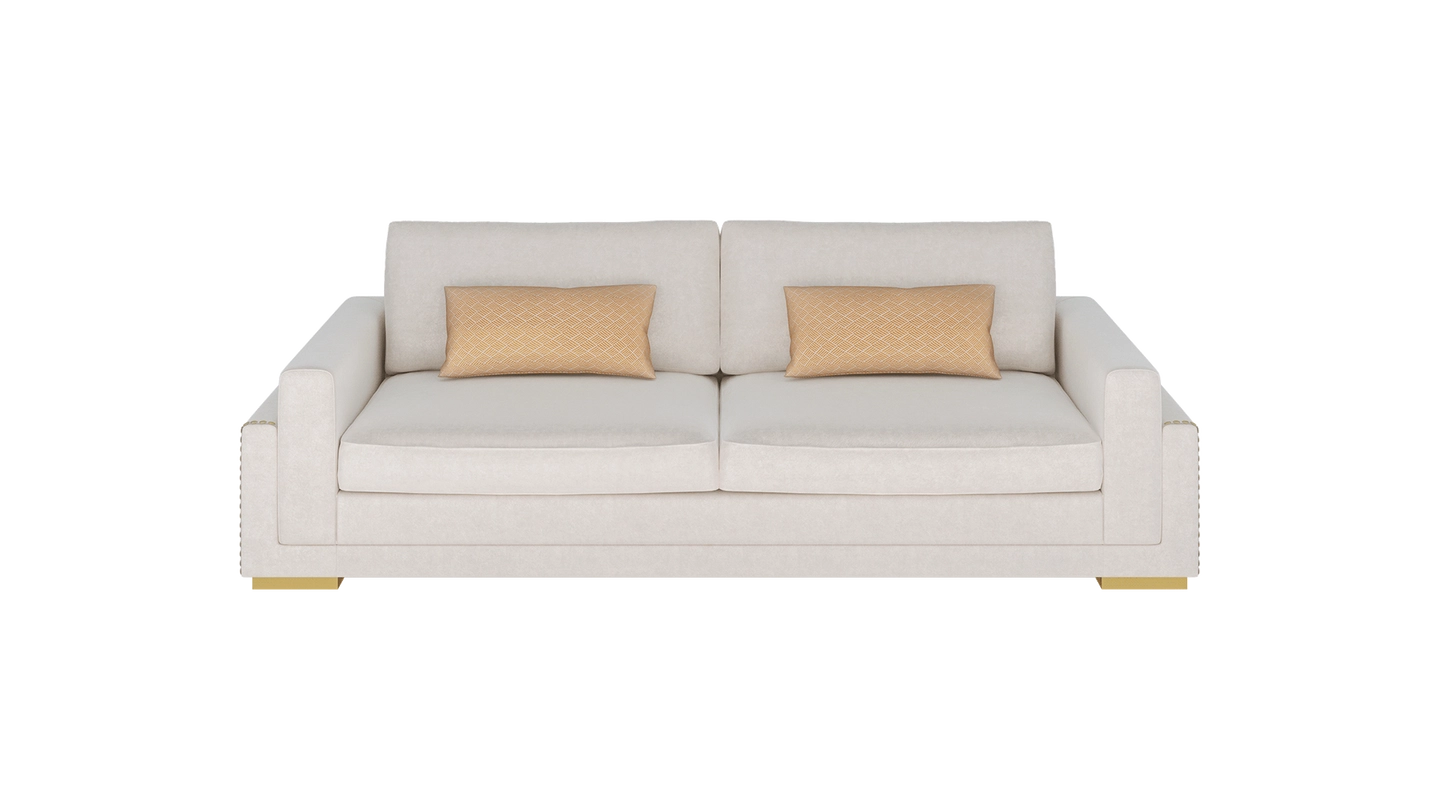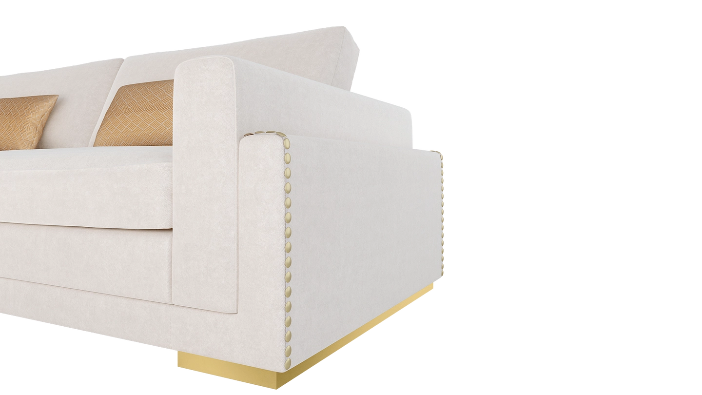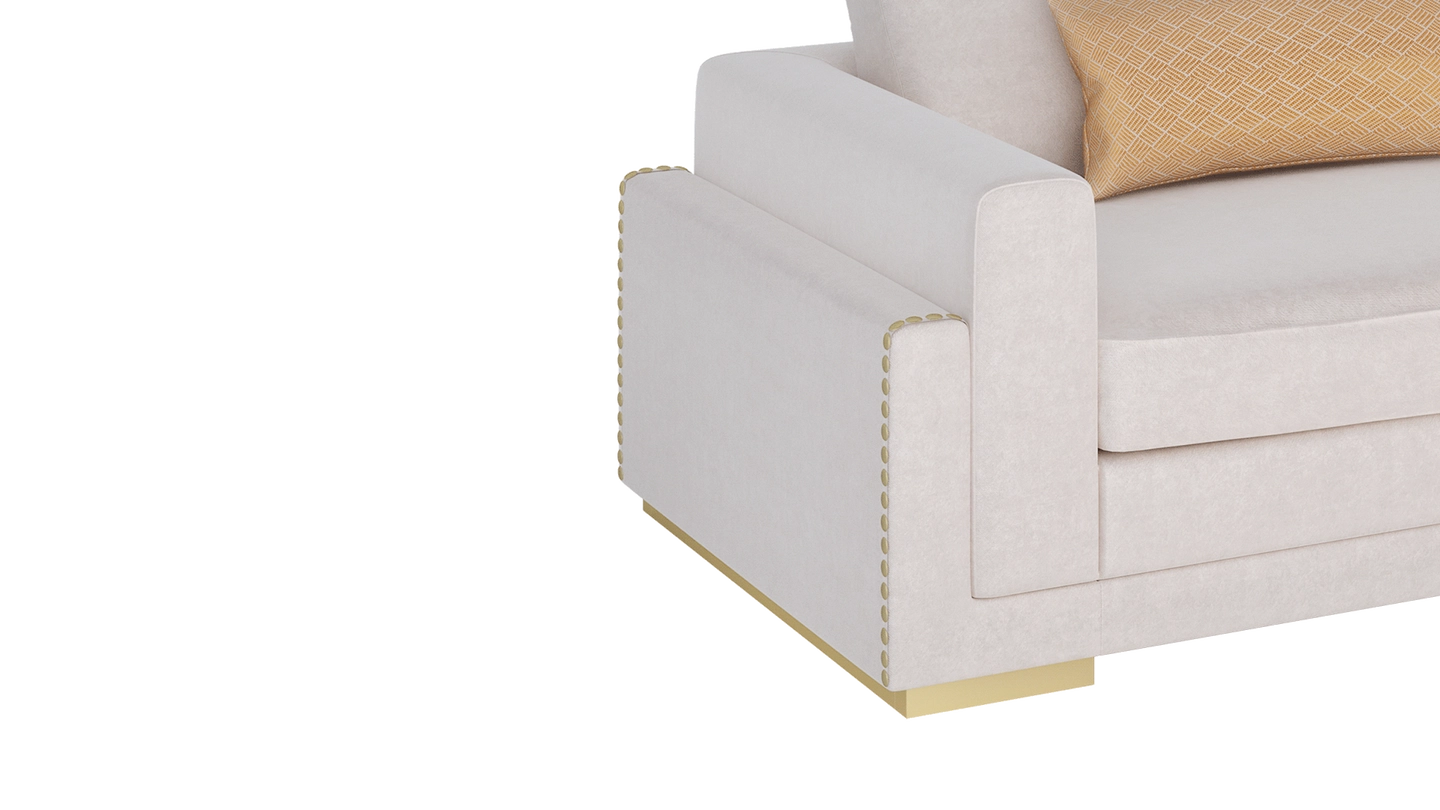 “The MINNESOTA sofa commands attention with its solid form. Crafted from velvet, it’s ultra comfortable and the deep cushions invite you to sink in and relax after a long day. ”