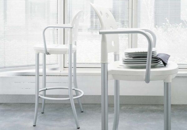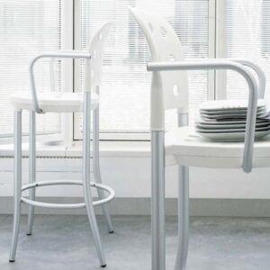 Stackable chair with natural aluminum legs and aluminum armrests. Seat in plastic material or foamed with removable fabric cover. Back in plastic material or with fabric cover. Stool with natural aluminum legs and armrests, seat and back in plastic material. All these Designs are Fully Bespoke . Our Expert Team can create any Design as per your specifications and requirements. For More information please contact our expert.
