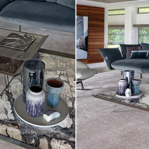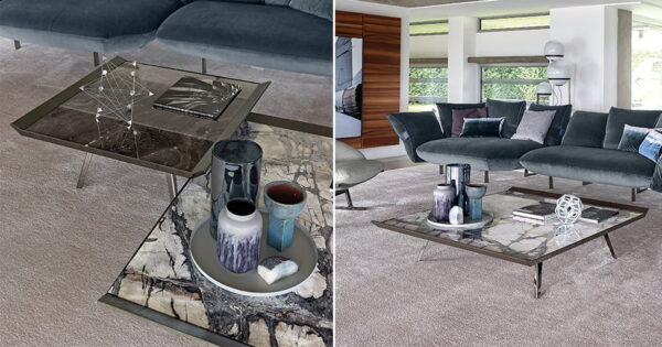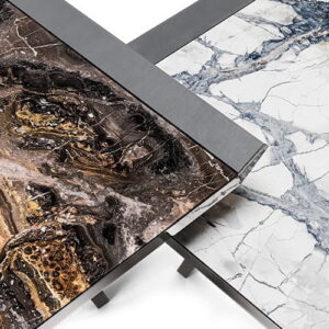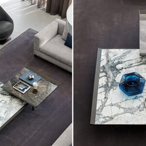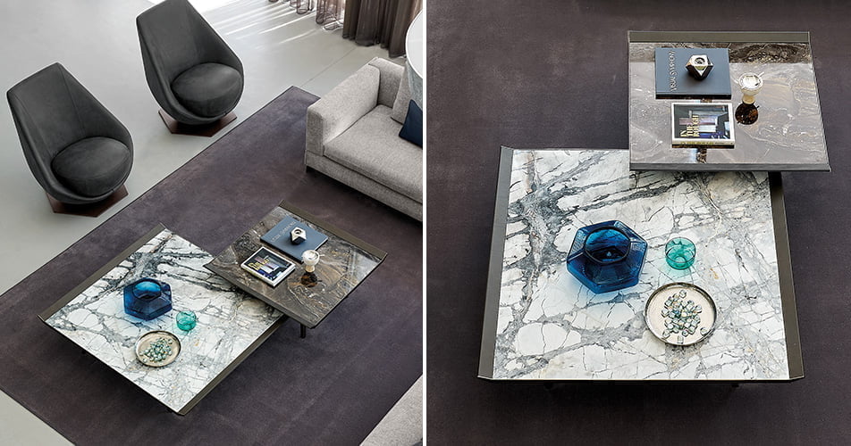 Marble is the striking center piece whilst the Tuscan styling and use of vegetable tanned leather makes up the arrangement for the corners and lifts on the outside. Finished with thin metallic legs, Moon Invaders is more than a play on words, but one of our environment and how we can create new emotions.