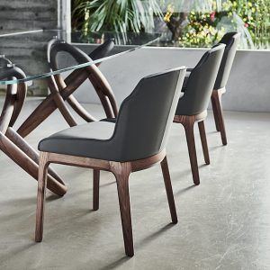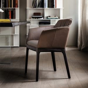 The Musa is a shapely chair that can be upholstered in a variety of finishes from the Cattelan Italia collection. The seat is complemented with a striking wood frame for contrast. Available with or without arms.