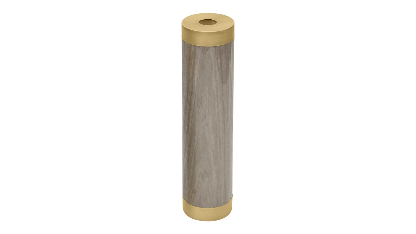 Designed to showcase a single flower, the cylindrical NAIROBI vase is crafted from glossy wood veneer and finished with brushed brass ends.