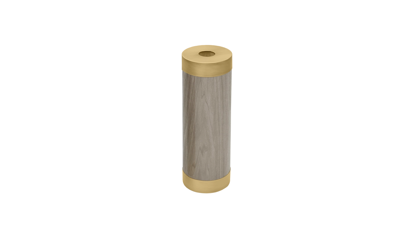 Designed to showcase a single flower, the cylindrical NAIROBI vase is crafted from glossy wood veneer and finished with brushed brass ends.