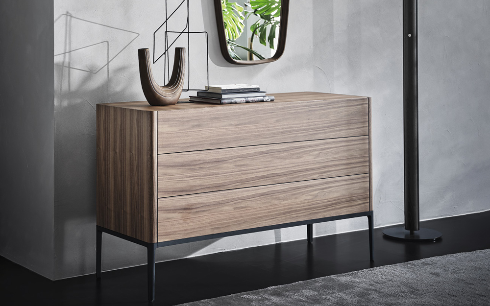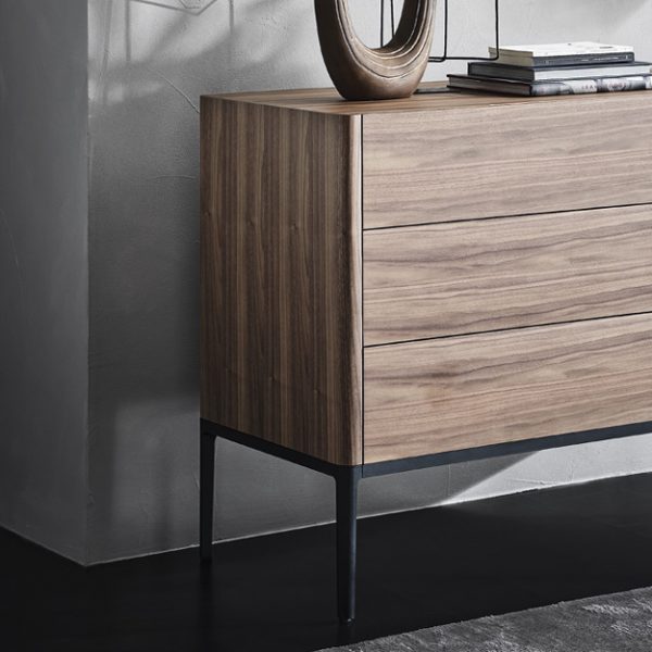 The Porada Nara Chest of Drawers is a sleek and elegant 3-drawer design with subtly curved edges for a soft finish. A the top drawer opens via a stylish cut-away handle in the top while the bottom two drawers open with a push-pull mechanism.