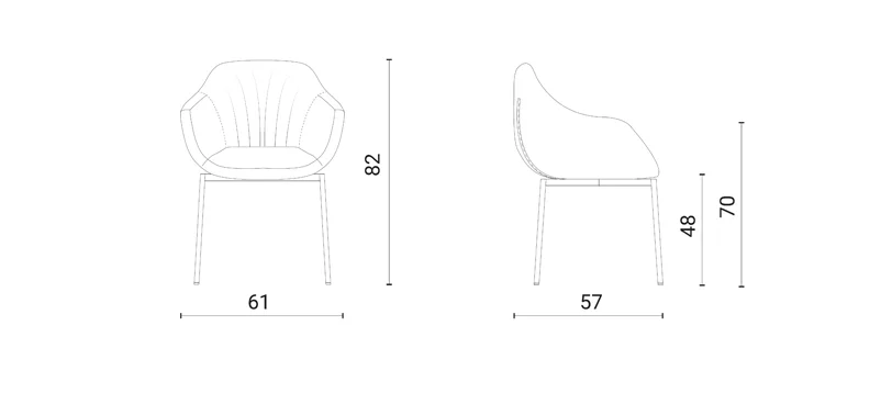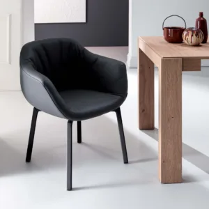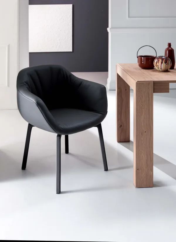 Practicality, versatility and comfort enclose the essence of these exceptional armchairs. Four different types of base to support a seat that invites us to sit down and envelops us in a generous hug. The armrests are born with large and curvilinear shapes, solid and ergonomic.