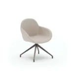 Chair with armrests, fully upholstered including in the structure, in various finishes. Swivel structure with return spring.