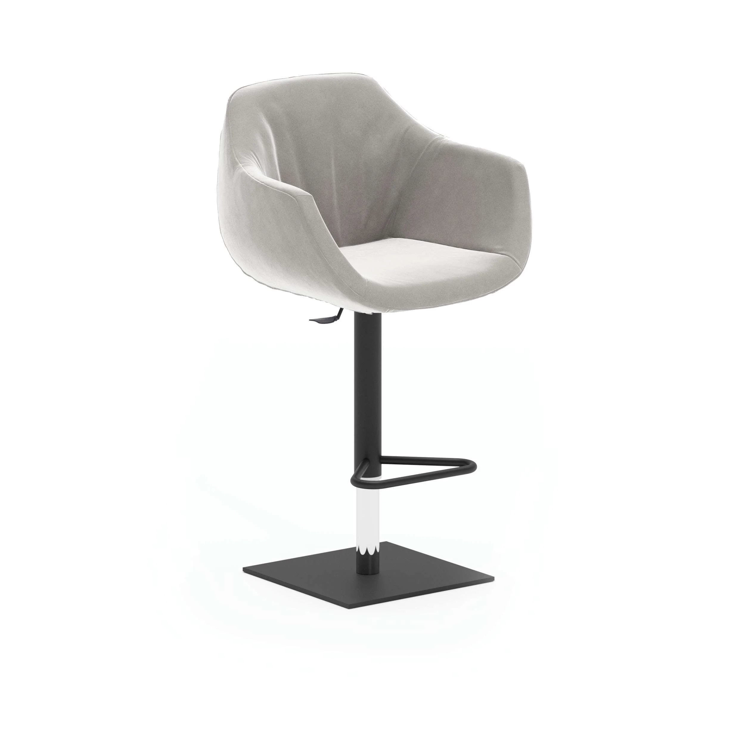 Gas lift stool with metal base. Fully upholstered chair with armrests in various finishes.