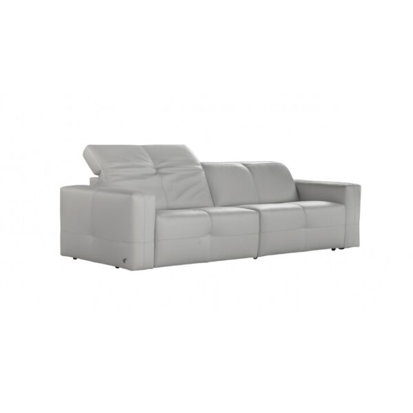Nicolas is a modern sofa, featuring distinctive traits and a rigorous design wisely combined to a soft padding. Equipped with manually liftable headrests, the sofa is also available as a recliner or motion, that allows the seat to be extended by 40 cm, turning it into a chaise longue. The recliner version is also available on the extra large seats, that can comfortably host two people.