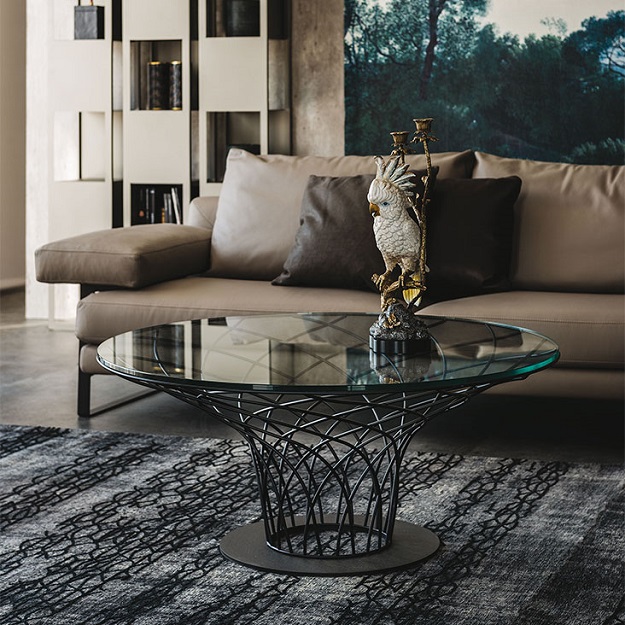 The Nido from Cattelan Italia is a beautiful circular-topped coffee table complemented by a striking detailed base. Available in coffee or side table sizes, the embossed steel base can be selected in a choice of lacquered finish with a choice of a matching metal top for side table styles and a transparent clear glass top for the coffee table.