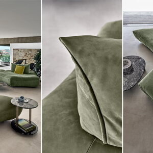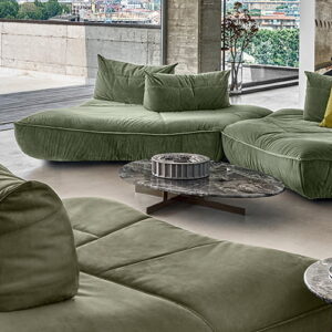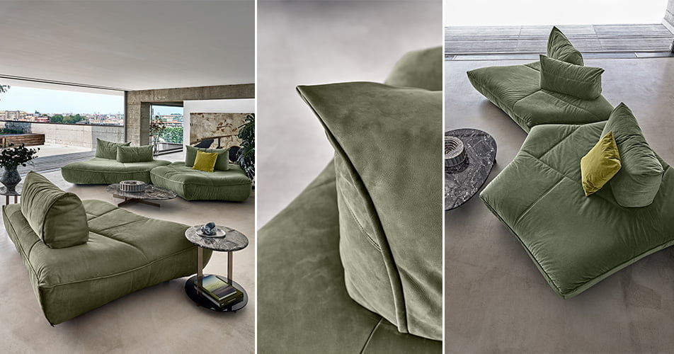 Place the cushions how you want, discover the irregular shape to be playful in its execution – here, you decide how you want to sit, notice how the cushions can be placed to maximise your comfort and seating position and pay close attention to the stitching, another perfect example of precision in the details.