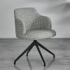 This is complemented by tapered legs that curve outwards at the rear to follow the line of the backrest, with an upholstered seat pad available in an array of fabrics from the Porada collection.