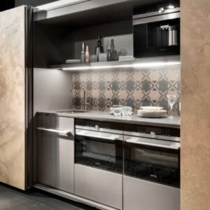 Opera, dynamic and innovative cuisine, characterized by the possibility of deconstructing the facade. Many materials used: laminates, lacquers, glass, marble, precious woods, Corian. All these Designs are Fully Bespoke . Our Expert Team can create any Design as per your specifications and requirements. For More information please contact our expert.