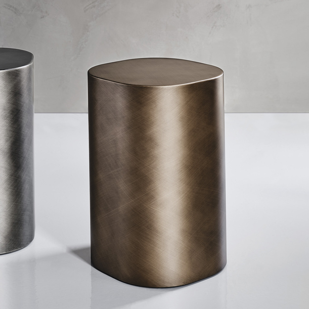 The Pancho Side Table by Cattelan Italia is stylish and unique; featuring a rounded cylinder-like structure in a choice of finishes. Please note the Pancho surface can mark and is designed to wear for an industrial look.