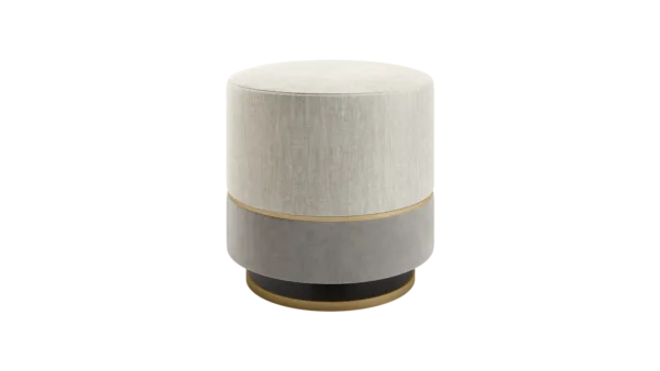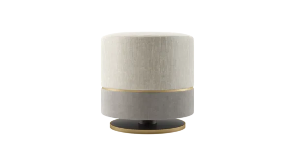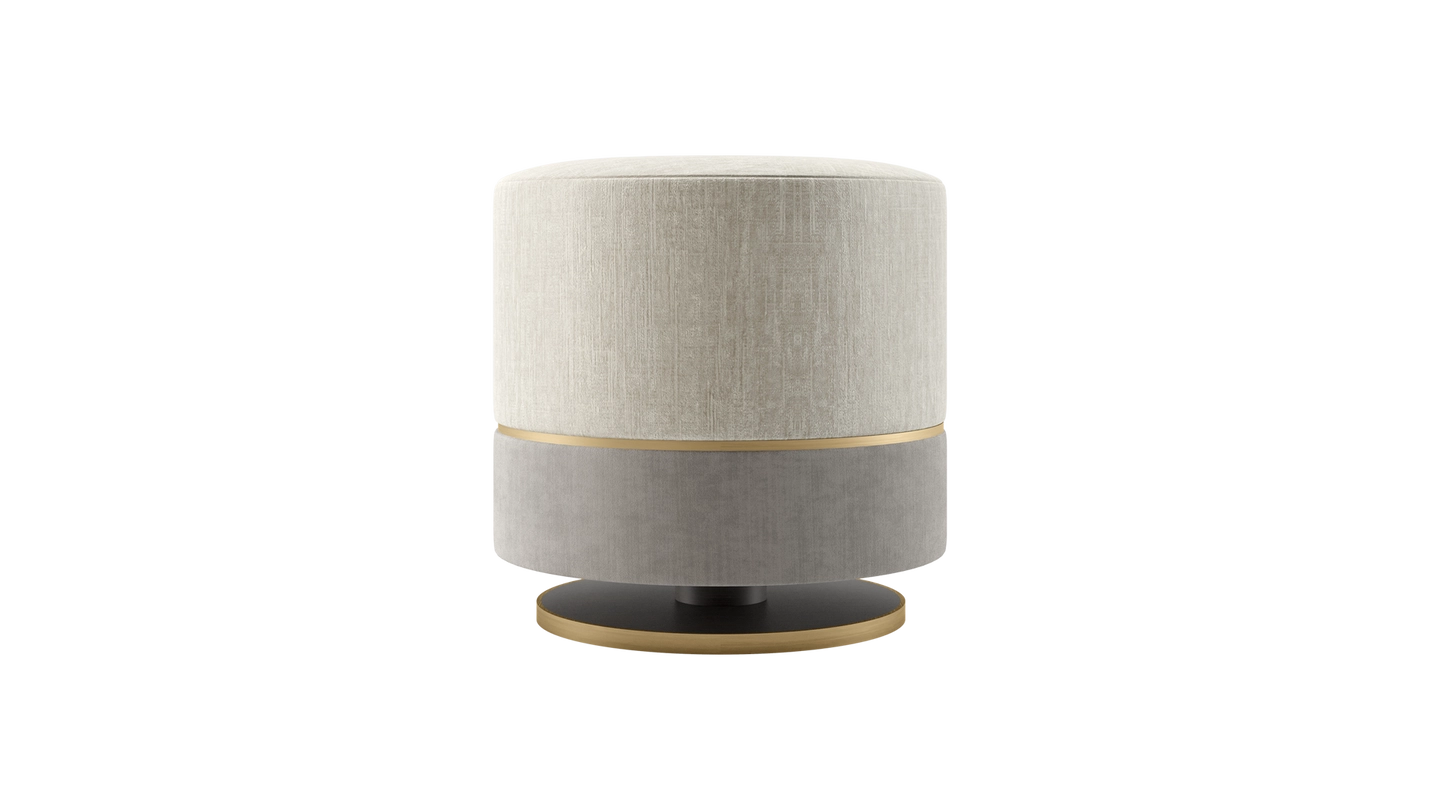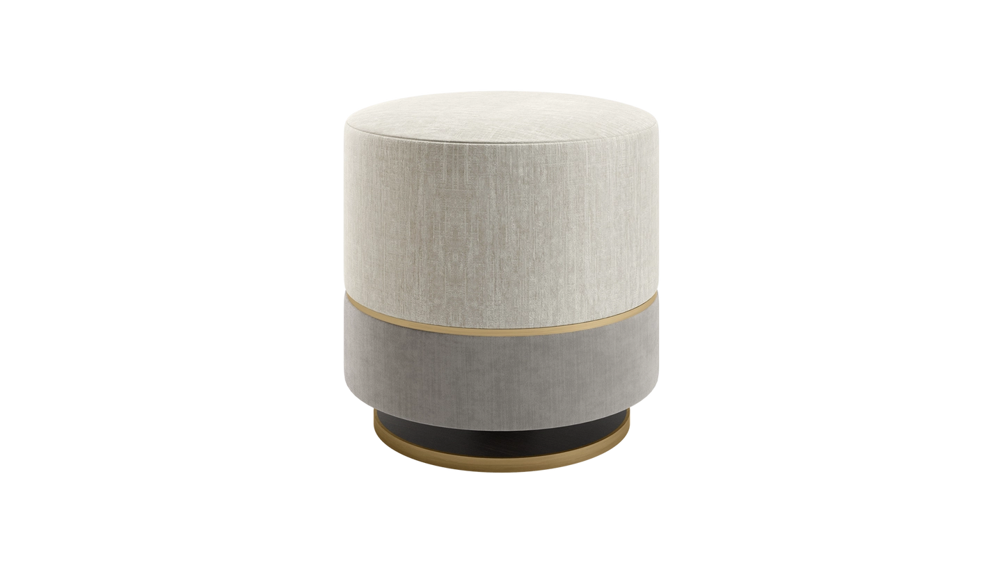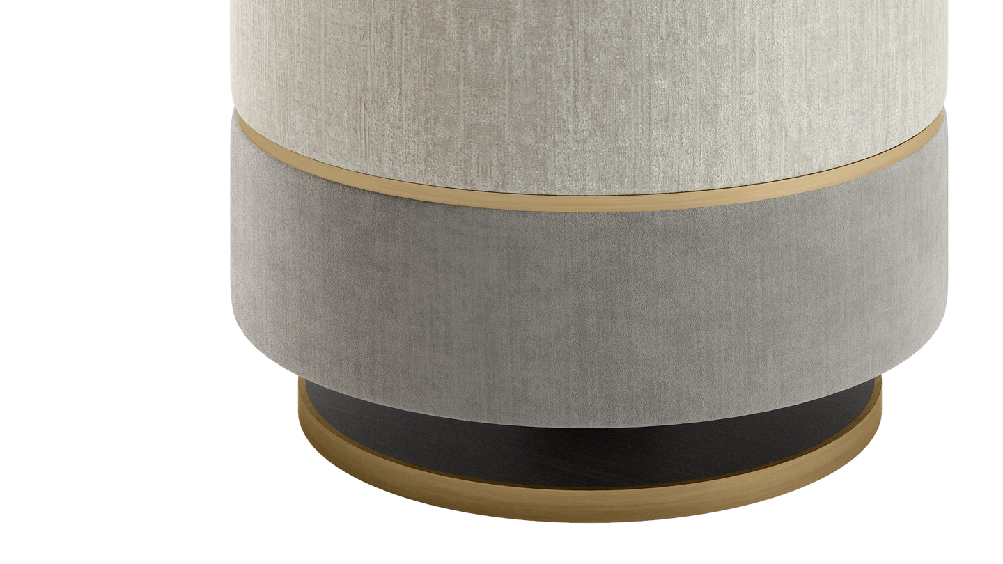 The pared-back PARMA stool elevates its understated silhouette by combining contrasting fabrics separated by a band of brushed brass.
