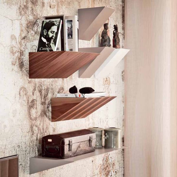The Pendola shelf is available in three Triangular sizes in Canaletto Walnut or White, Grey, Grey embossed Lacquered Wood. Maximum capacity 10kg. Display individually or combine multiple units to create a unique shelving composition as desired.