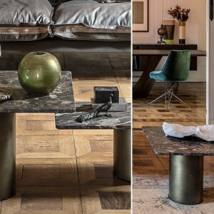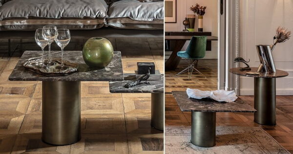 With an off-centre base and two distinct materials, Petra is the kind of small table that plays with the creative and challenges the engineering required to make something that not only stands out but works.