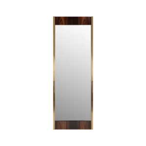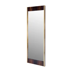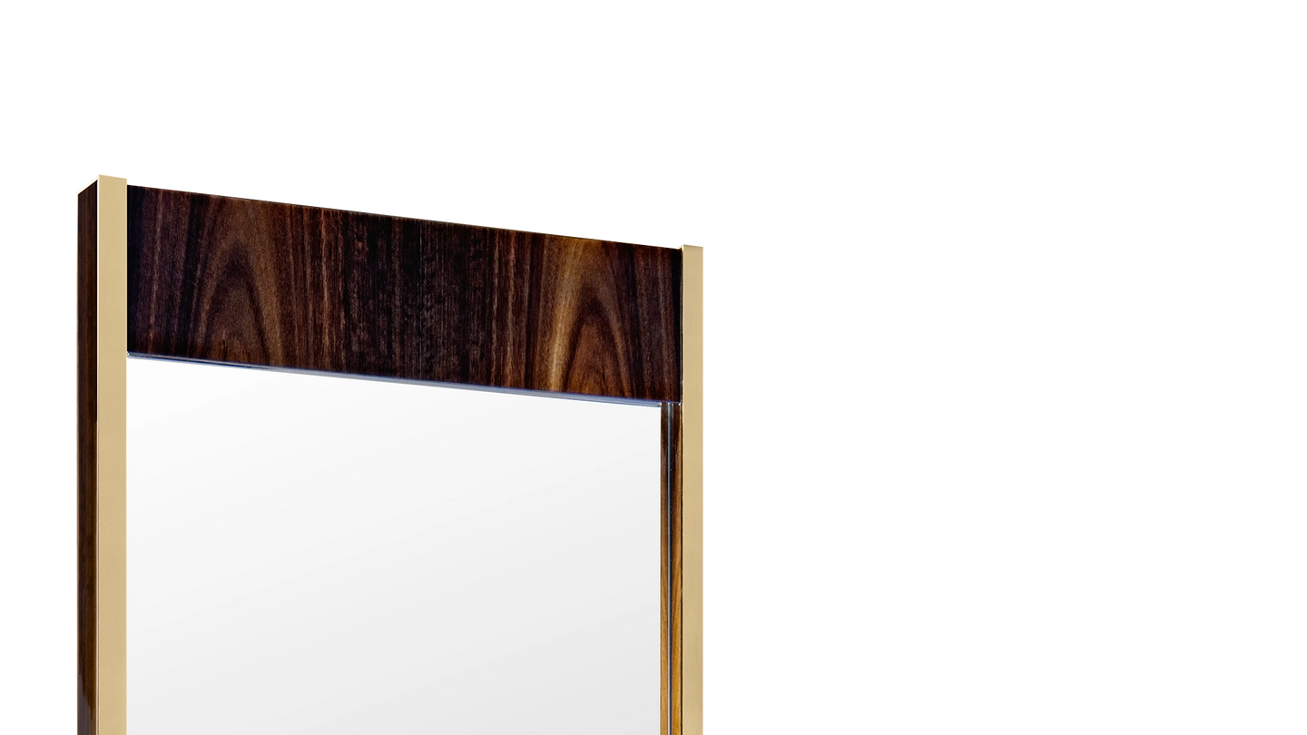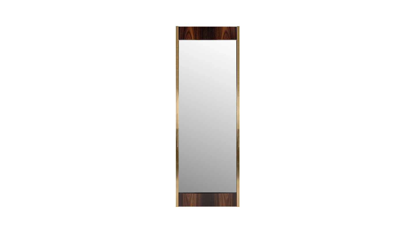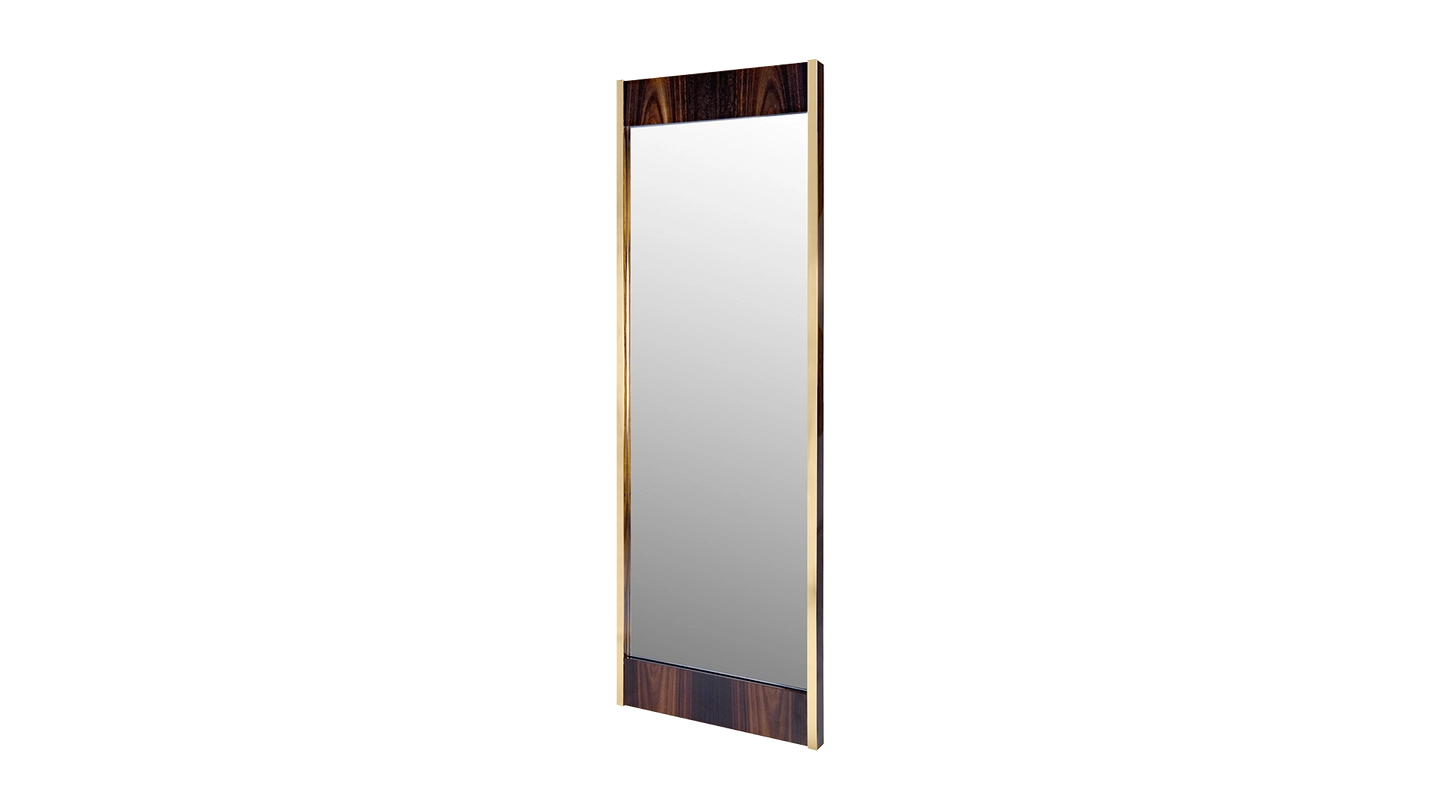 A clean-lined, full-length mirror, the glamorous PHOENIX measures a sizeable 2,000 millimetres. A chic frame of glossy wood veneer and brushed brass encloses a rectangle of clear glass, which will reflect light and make your space appear more expansive.