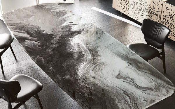 The Cattelan Italia Planer CrystalArt Table features a stylish lacquered steel base with cross bar and angled ‘feet’, with a decorative CrystalArt design glass top in a choice of rectangular or rounded rectangular sizes. Select from a range of lacquered finishes for the base with a choice of CrystalArt design for the top.