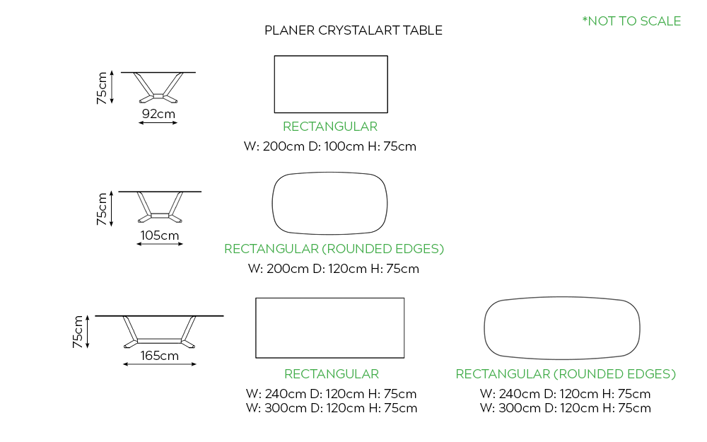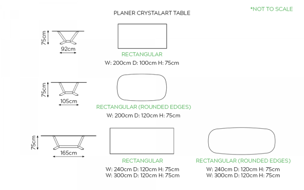 | Size | Rectangular – W: 200cm D: 100cm H: 75cm, Rectangular – W: 240cm D: 120cm H: 75cm, Rectangular – W: 300cm D: 120cm H: 75cm, Rectangular (Rounded Edges) – W: 200cm D: 120cm H: 75cm, Rectangular (Rounded Edges) – W: 240cm D: 120cm H: 75cm, Rectangular (Rounded Edges) – W: 300cm D: 120cm H: 75cm |
