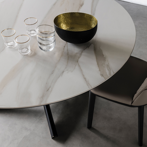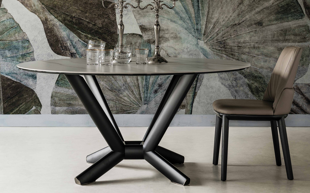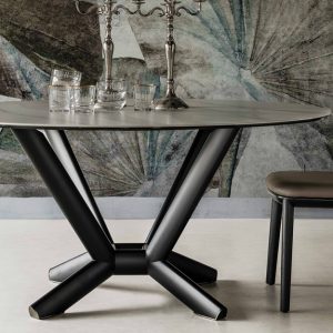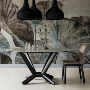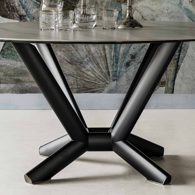 The Planer Keramik Round Table is an elegant dining table by Cattelan Italia with a stylish feature base in lacquered steel. The circular top can be selected in a range of stylish ceramic options backed by a smoked grey glass.