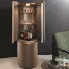 A contemporary bar cabinet with solid Canaletto Walnut frame with built-in LED storage, pull-out board, drawer, wooden tray and glass and wooden shelves. The handle is carved into the upper part of the door. The Polifemo is available with either a right- or left-hand opening, and the legs comes in a Grey Pewter finish.