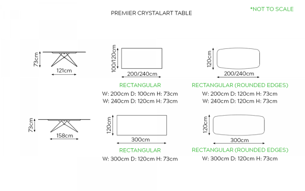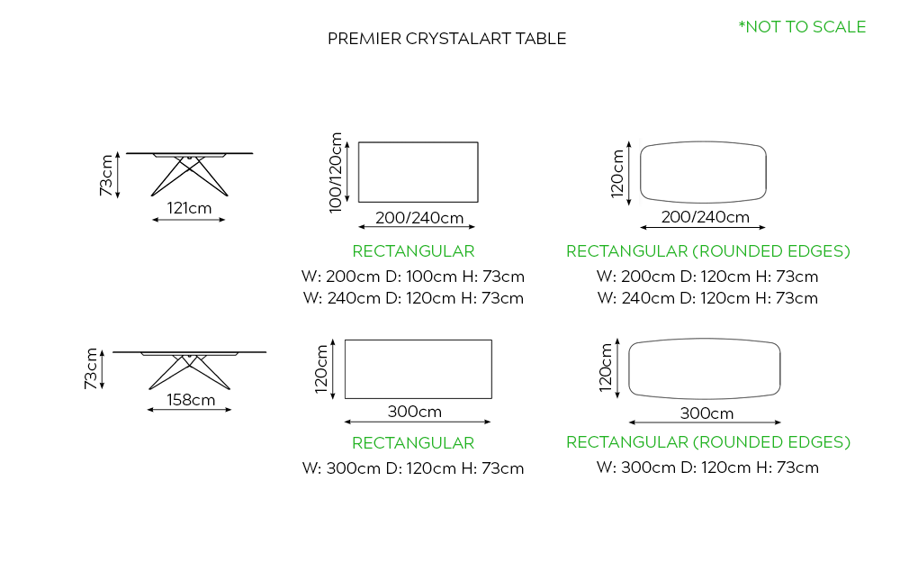 Size | Rectangular – W: 200cm D: 100cm H: 73cm, Rectangular – W: 240cm D: 120cm H: 73cm, Rectangular – W: 300cm D: 120cm H: 73cm, Rectangular (Rounded Edges) – W: 200cm D: 120cm H: 73cm, Rectangular (Rounded Edges) – W: 240cm D: 120cm H: 73cm, Rectangular (Rounded Edges) – W: 300cm D: 120cm H: 73cm |