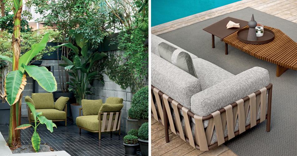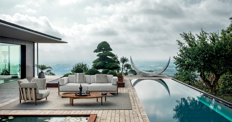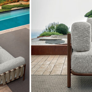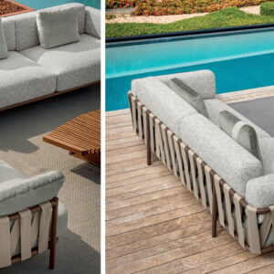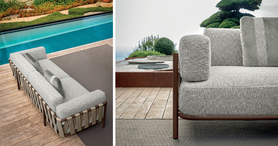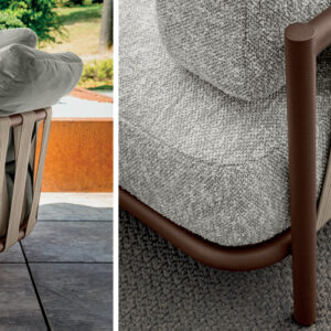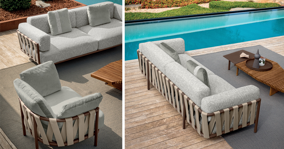 The straps, which originate from a sole ribbon, come together in succession in the backrest, a seamless braiding that produces a dynamic and distinctive zigzag pattern. The resulting sensation is one of lightness and freshness: a marine breeze that caresses and reinvigorates. The originality and strong identity of the individual features, along with the union between relaxation and aesthetic pleasure that can be perceived at first glance, make Punta Ala a sofa with which to feel at ease – a design solution that underscores the objective of creating pieces of pronounced sensitivity, subtle protagonists with innate grace.