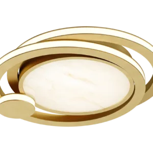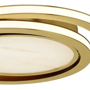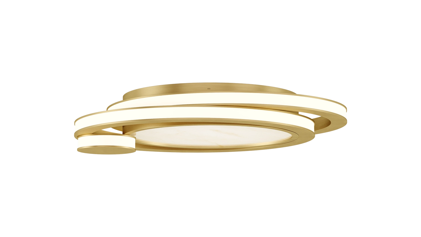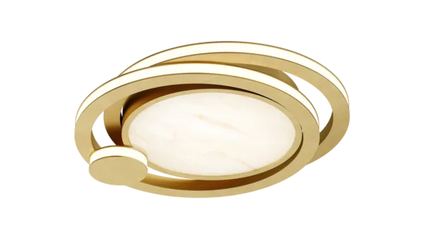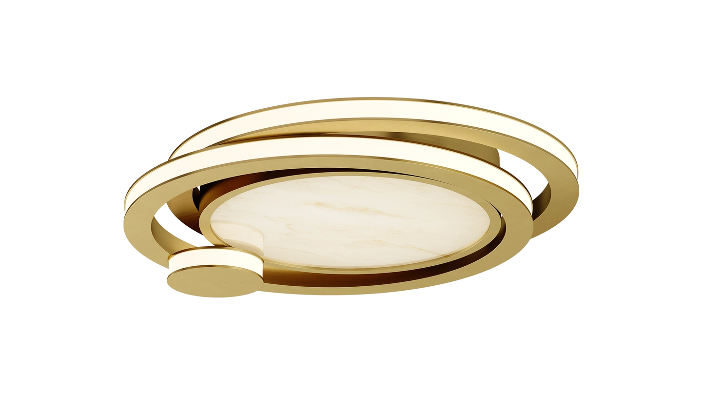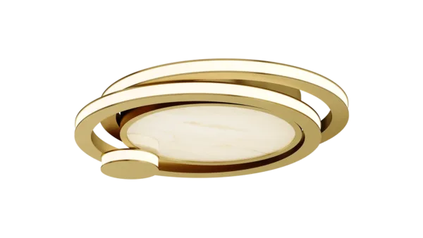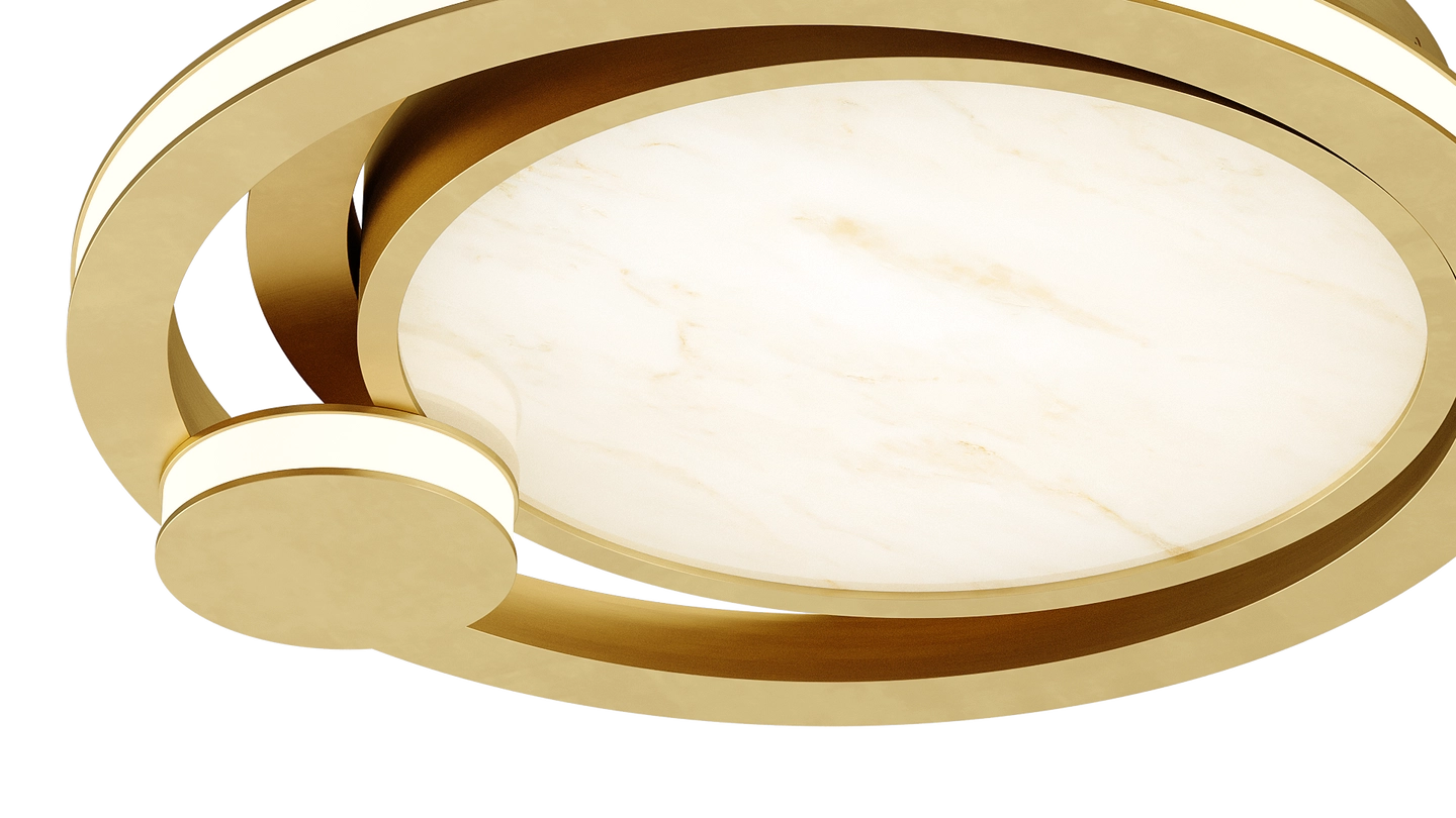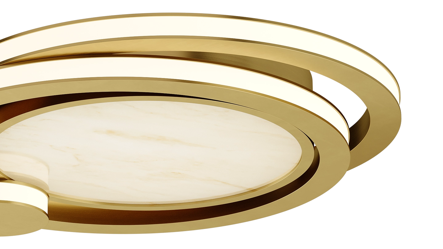 Sitting flush to the ceiling, the QUEBEC ceiling lamp is made up of delicate overlapping circles of light that appear to orbit around a luminescent stone centre. With its low profile and understated elegance, it’s well-suited to any space where ambient, unobtrusive lighting is required.
