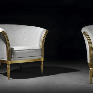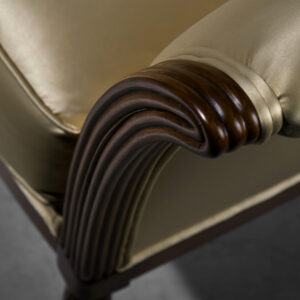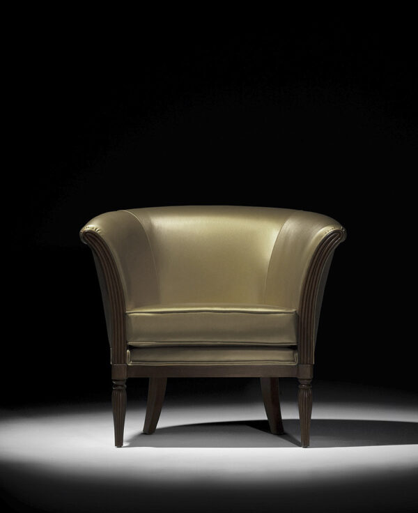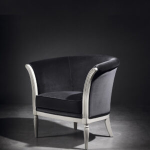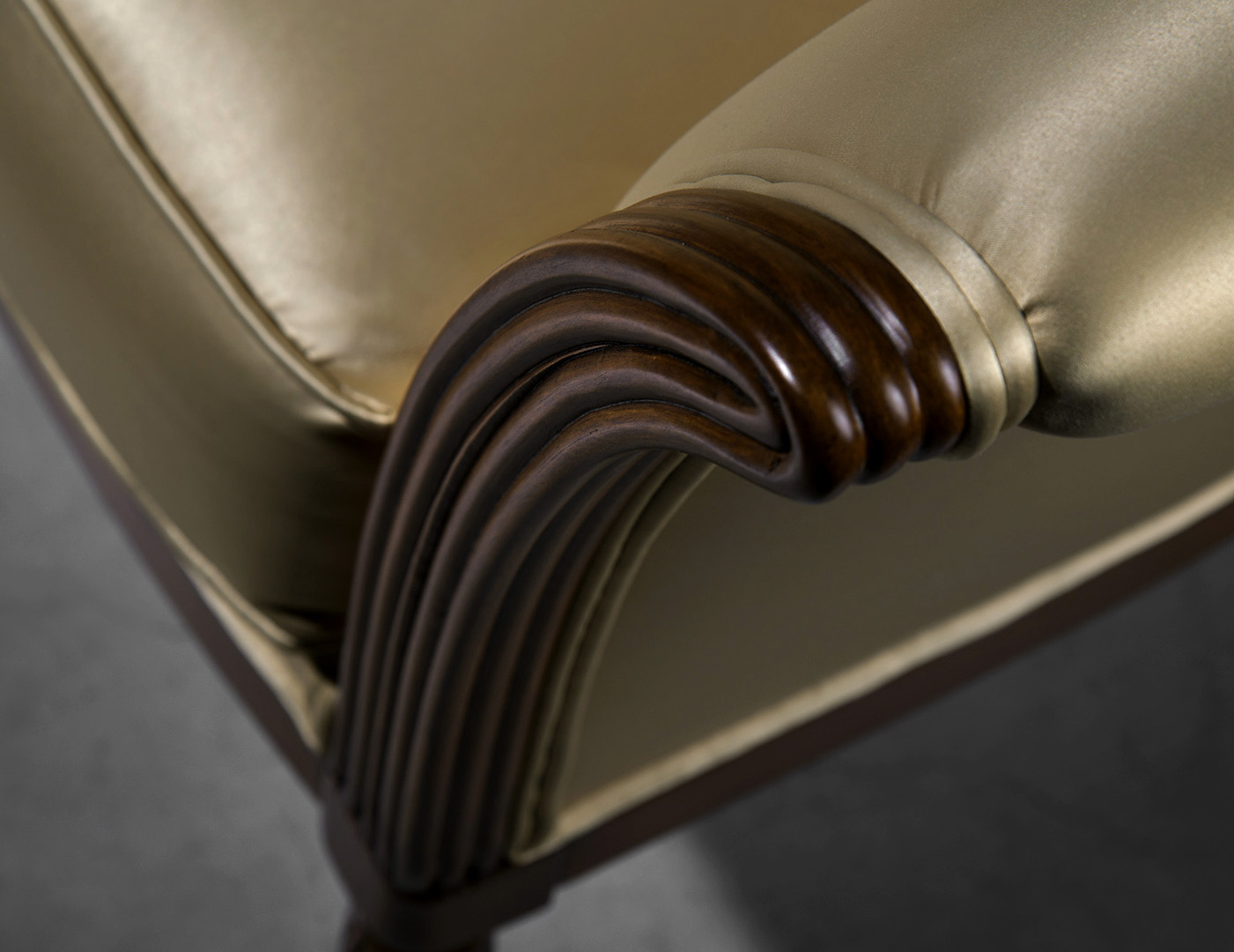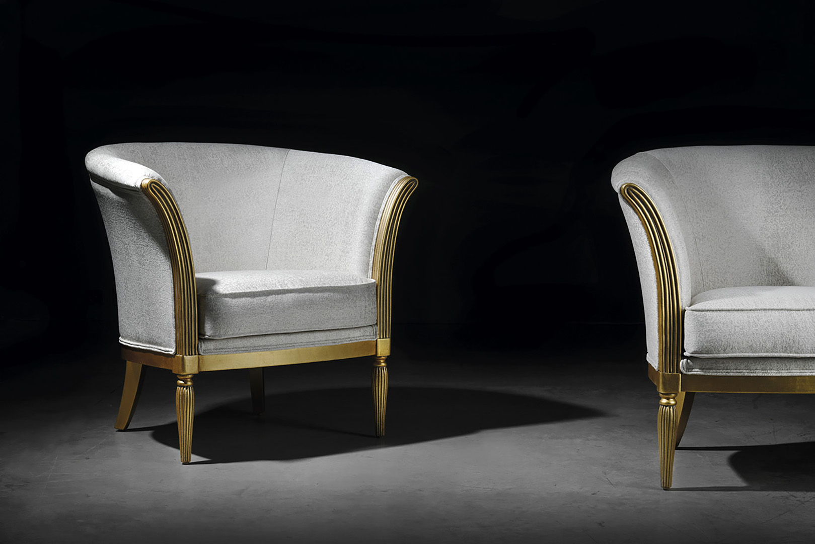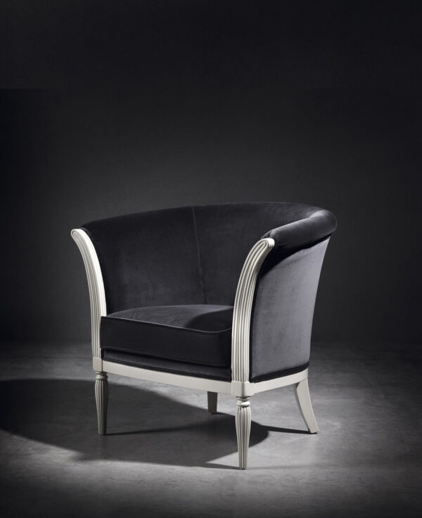 The RALPH armchair made of beech wood, is an exquisite piece of luxury furniture perfectly suited both to classical and contemporary interiors. The fusion between its enfolding seat back and armrests invites one to sit and repose.
