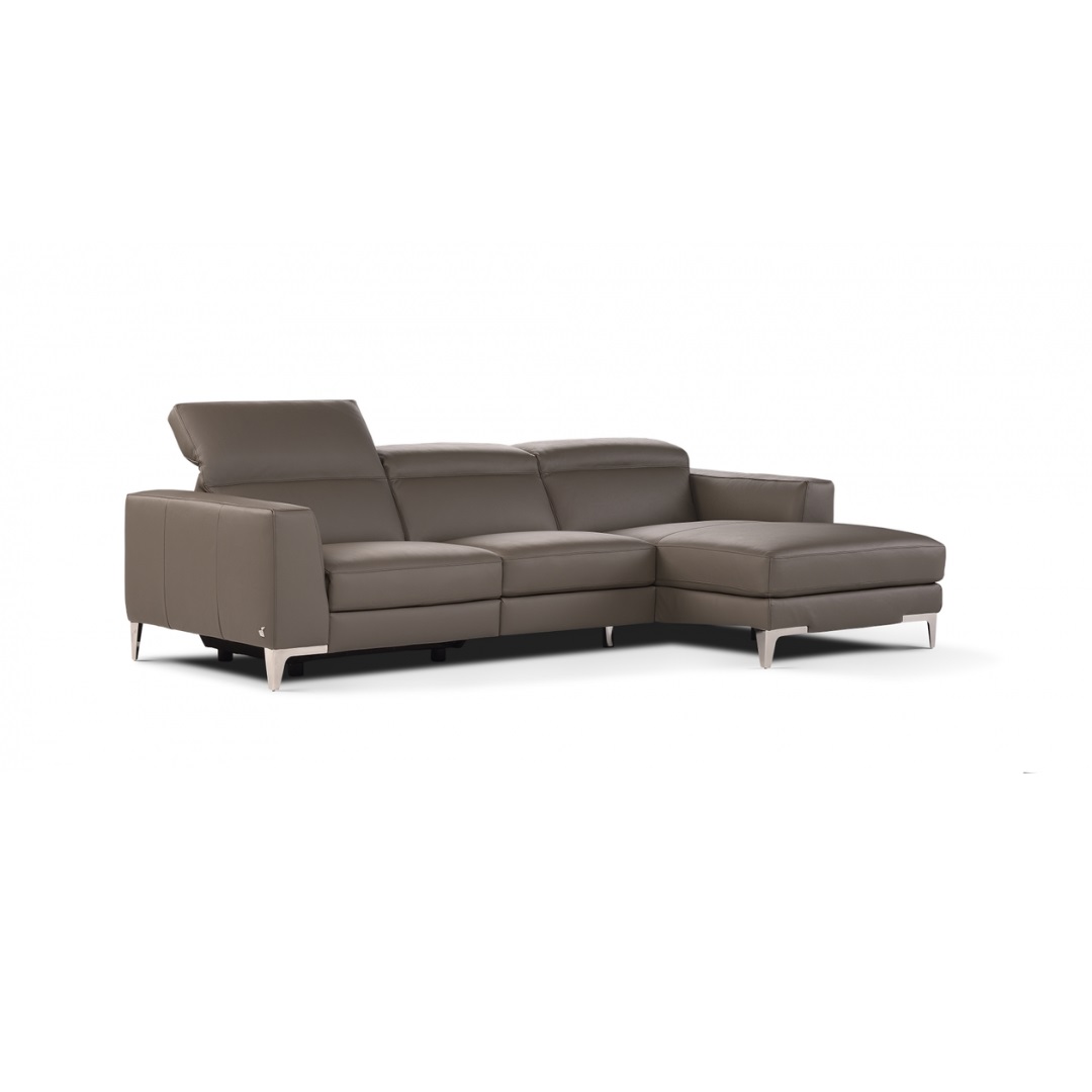 Raoul is a sofa with an open base that fits well into metropolitan environments. A maximum comfort experience is made possible thanks to the manually liftable headrest (increasing the height of the backrest) and a comfortable recliner that allows you to stretch the footrest and recline the backrest electrically, through the touch pad positioned on the side of the seat. Also available in corner or chaise-longue versions, it adapts well to all styles thanks to its linear metal feet, which is also available in wood with different finishes