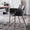The Rhonda Chair with Wood Legs is a curvaceous design featuring a rounded wood frame that supports an upholstered padded seat, backrest and armrests. The backrest features intricate stitching and ruched detailing for a distinctive look.